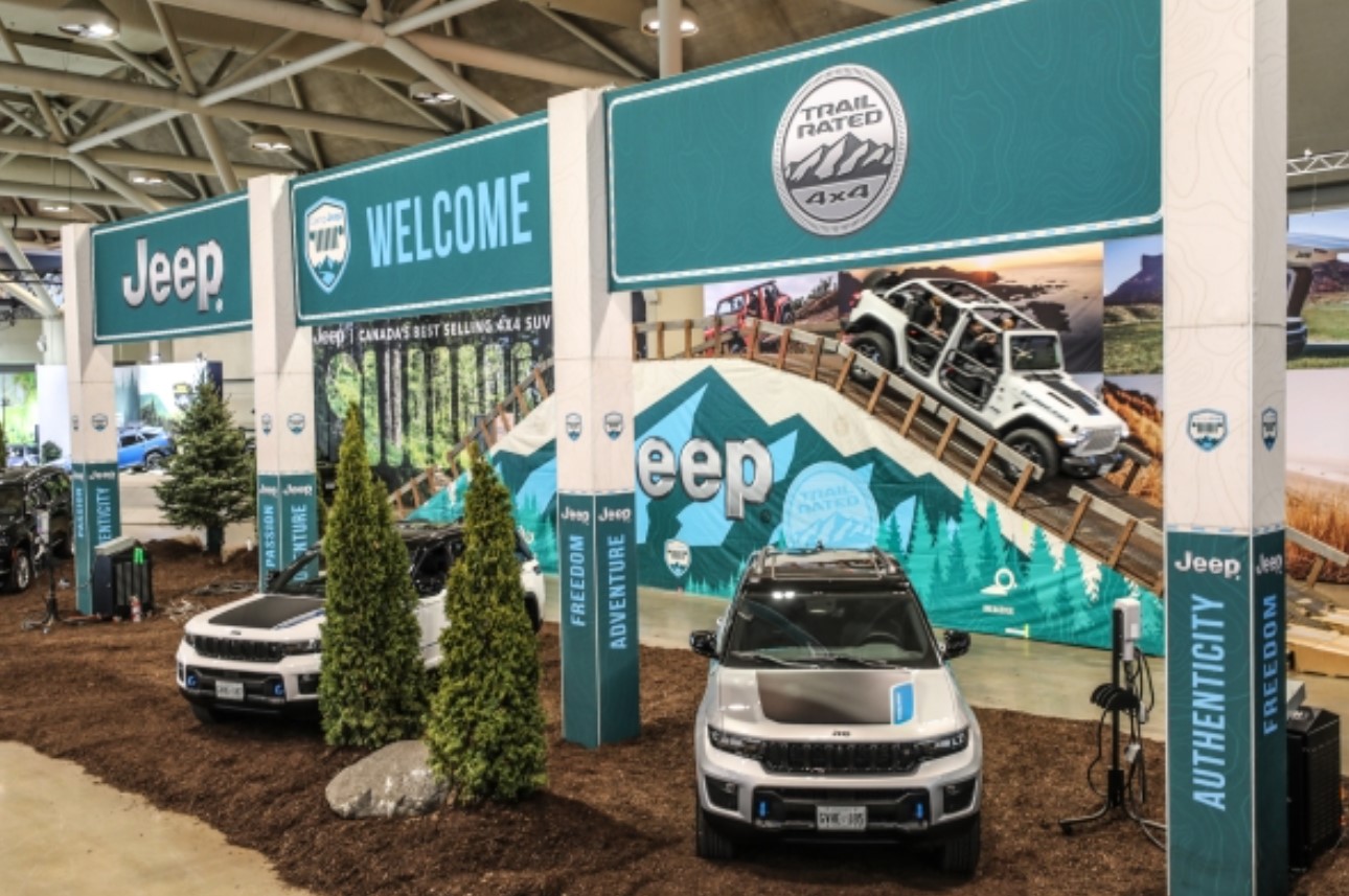 La exhibición de 20,000 pies cuadrados de Toronto se destaca por una montaña de metal de 13 pies (cuatro metros) de altura que los vehículos Jeep escalan y descienden con destreza. Corriendo todos los días en el salón del automóvil, los asistentes mayores de 18 años pueden viajar gratis fuera de la carretera en los siguientes vehículos: