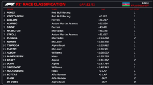 En las últimas 10 vueltas, la diferencia aumentó a más de tres segundos, y estaba claro que la derecha había terminado. Pérez se hizo con su segunda victoria del año y recortó su desventaja en la lucha por el título a seis puntos.