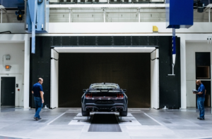 - Superficie de la carretera rodante en el túnel de vientoes capaz de alcanzar 200 mph junto con la velocidad del aire para que los aerodinámicos puedan replicar las condicionessimilares a los experimentados en la carretera o la pista, lo que ayuda a la investigación y permite más oportunidades para el desarrollo adicional