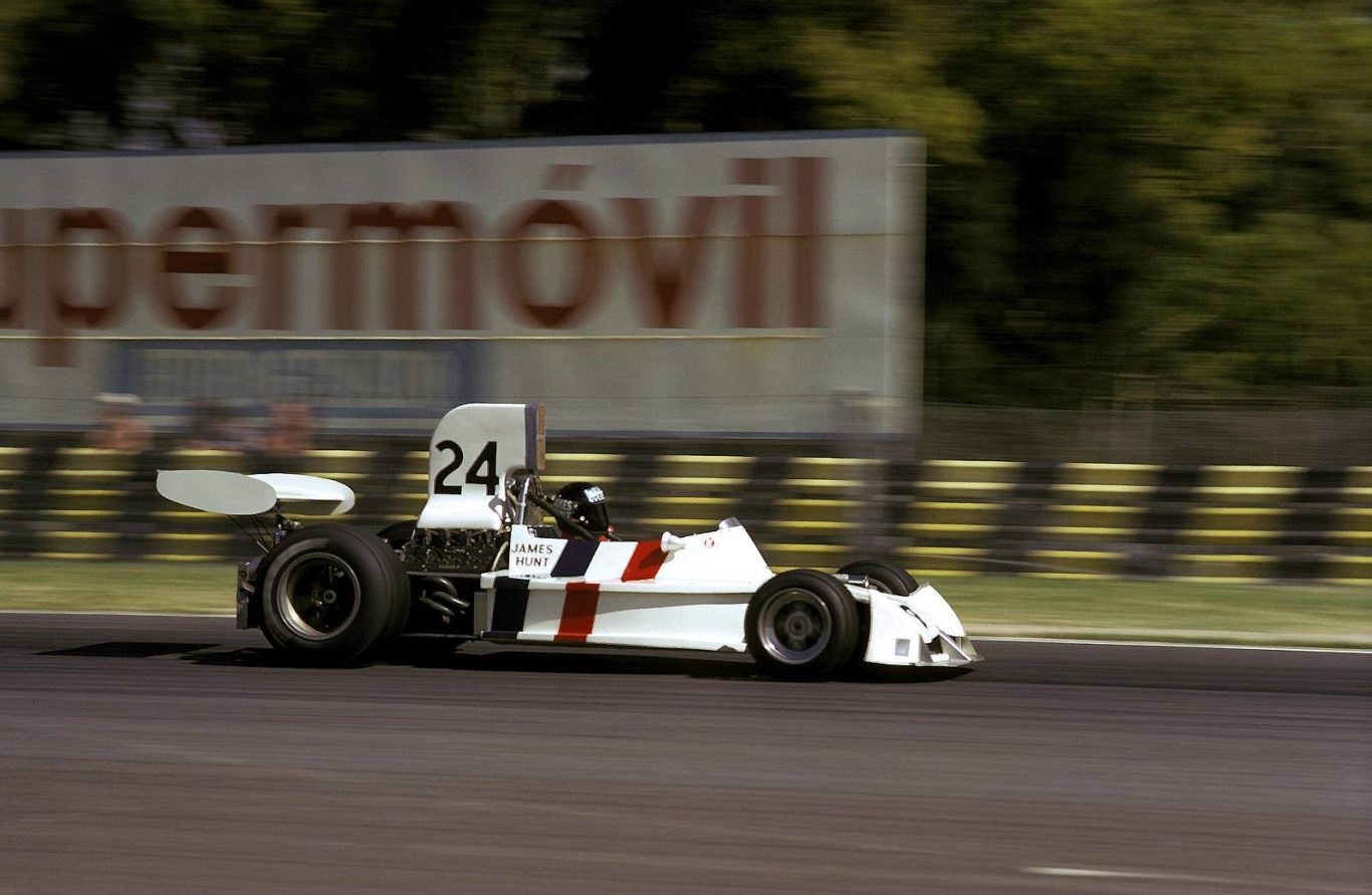 El 30 de marzo de 1974 en Kyalami, Sudáfrica, el coche de Lord Hesketh, conducido por el entusiasta británico James Hunt, tomó la salida por primera vez en una carrera de Fórmula 1.