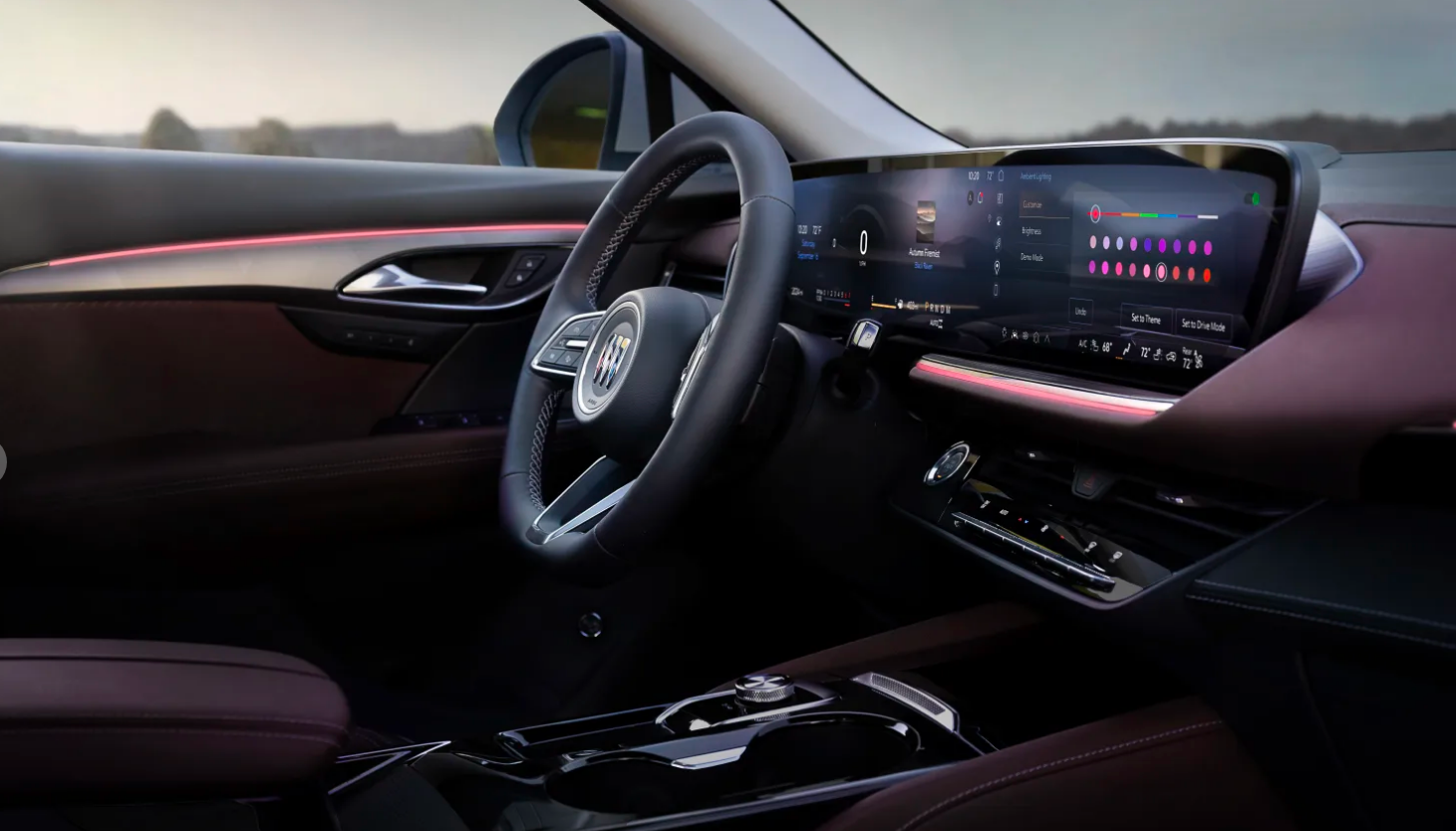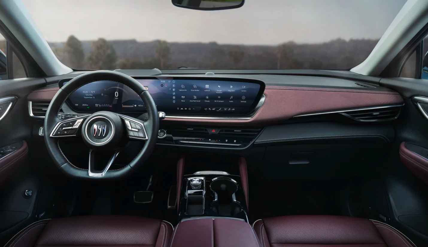 Los cambios más sustanciales de Buick se encuentran dentro del Envision 2024. Cuenta con una pantalla estándar de 30 pulgadas que se extiende a lo largo del tablero y abarca el grupo de instrumentos y la pantalla de infoentretenimiento. Esto también significa que tiene un nuevo diseño de consola central y consola central que se adapta mejor a esta enorme pantalla. Muchos de los botones duros de control del clima se eliminan de la consola central, pero algunos botones clave y de uso frecuente permanecen para facilitar su uso. La disposición de la “palanca de cambios” accionada por botón en la consola central también desapareció, reemplazada por la palanca de cambios de columna de GM que lentamente se abre paso en toda la línea de General Motors. En su lugar hay una enorme y brillante perilla de volumen y capacidad de almacenamiento adicional.