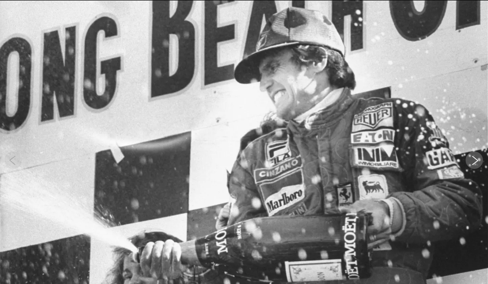 Carlos Reutemann, celebrando el 2 de abril de 1978 en el Gran Premio de Long Beach California | Foto: AP