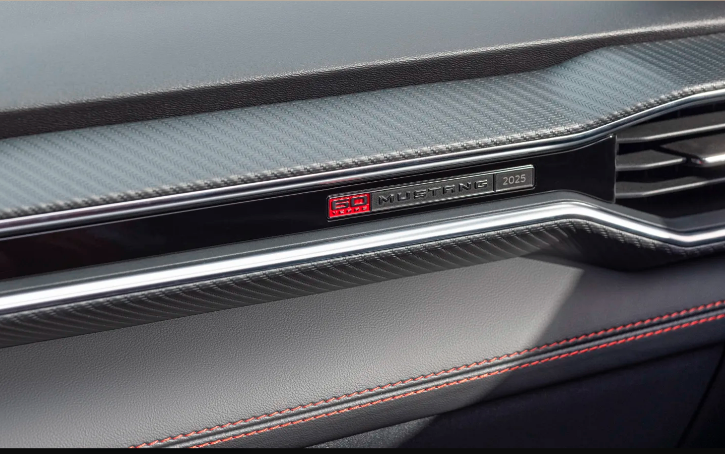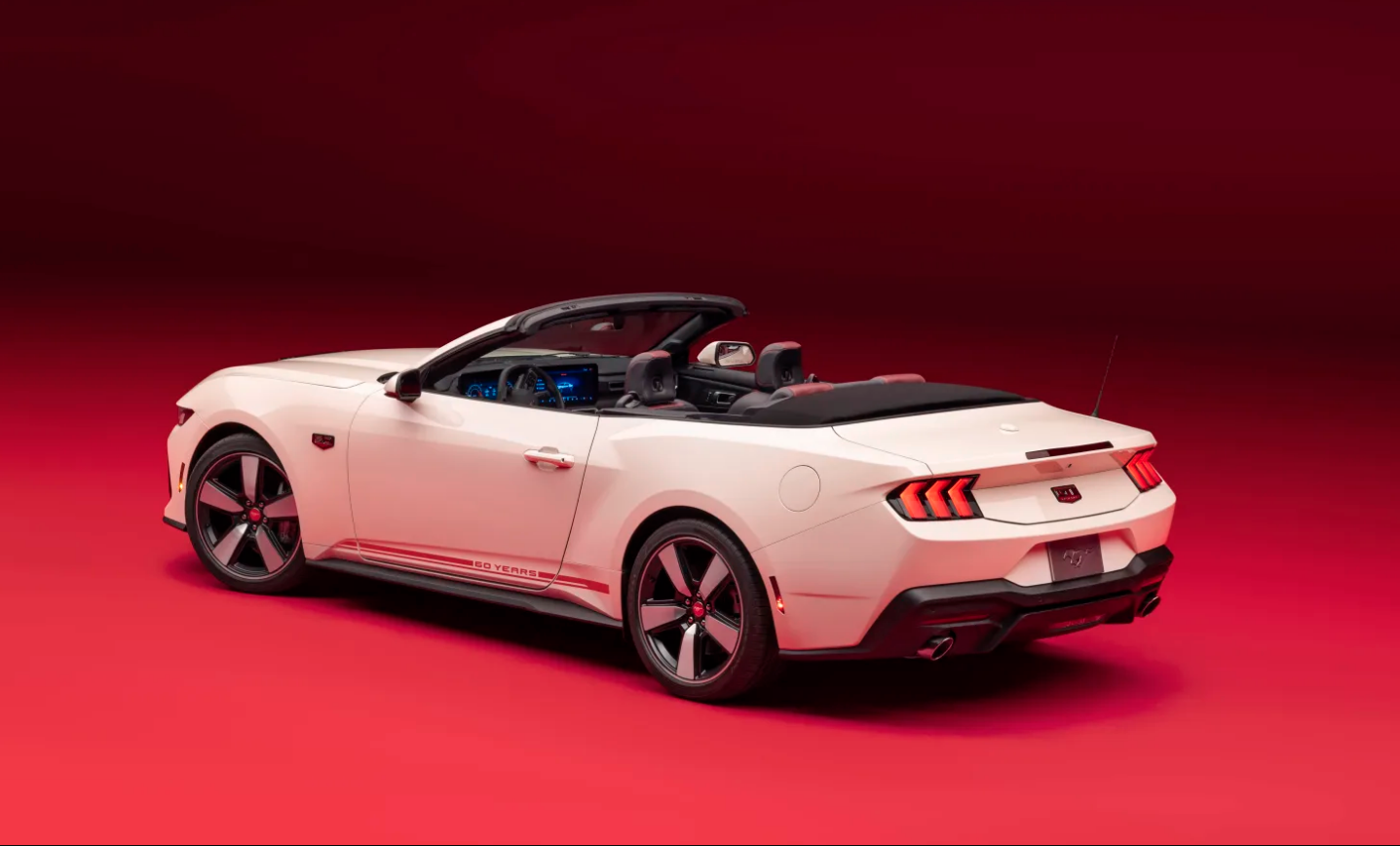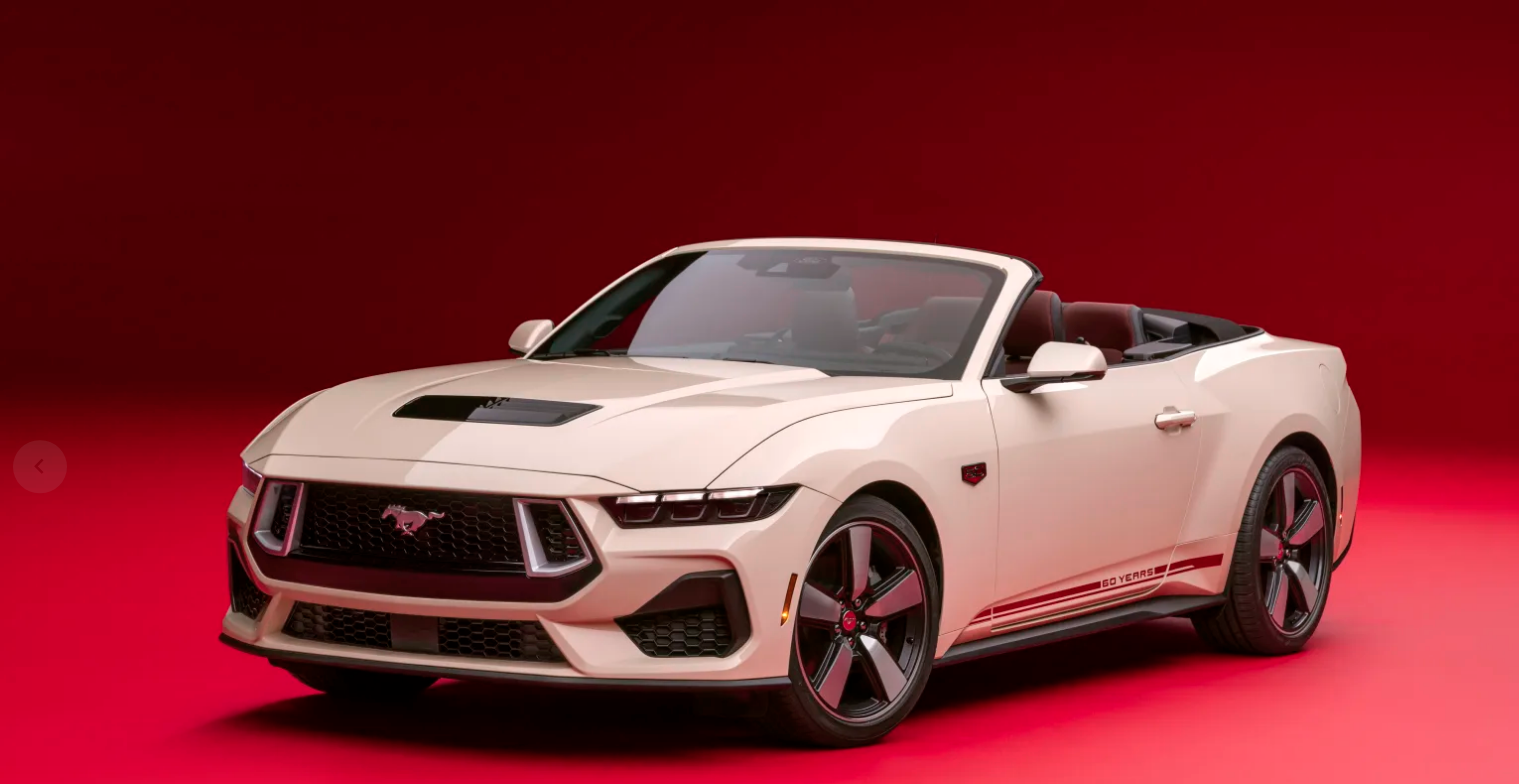 Y aquí estamos con el Ford Mustang 60th Anniversary pack , disponible en la versión Mustang GT Premium 2025 en estilos cupé y convertible. Todos estarán propulsados por motores V8 de 5.0 litros y los compradores podrán elegir entre opciones de transmisión automática y manual. Cada automóvil recibirá insignias del 60º aniversario en los guardafangos y la maletera, además de exclusivos aros de 20 pulgadas en Dark Gravity Grey con brillantes detalles mecanizados acabados en Vermillion Red. Las tapas centrales de aluminio estampadas con «tema retro» que se dice que están inspiradas en las del Mustang de 1965 y los gráficos laterales de la carrocería en Iconic Silver o Vermillion Red son elementos obvios de retroceso, mientras que la parrilla sí lo es, Dice Ford, en una versión moderna del diseño de malla del original. Wimbledon White, Race Red y Vapor Blue conforman una paleta de colores muy patriótica.