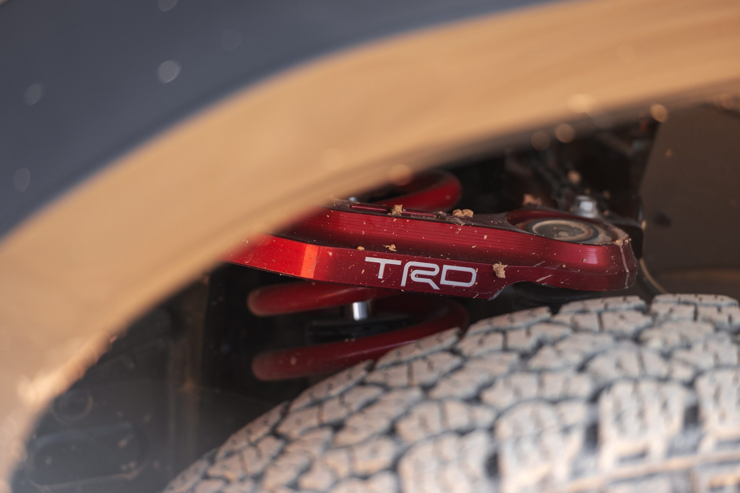 El TRD Pro también es un grado exclusivo de i-FORCE MAX, y los grados TRD Sport , TRD Off-Road y Limited tienen la opción del tren motriz híbrido. El TRD Pro presenta los primeros asientos delanteros IsoDynamic Performance estándar del segmento, que utilizan un sistema de amortiguador de aire sobre aceite que permite el movimiento vertical y lateral del asiento simultáneamente para ayudar a reducir el movimiento del cuerpo y estabilizar la cabeza y el cuello para mantenga la alineación con la columna vertebral. TRD Pro también incluye características estándar adicionales como amortiguadores ajustables TRD-Tuned FOX® QS3 con depósitos traseros remotos, una entrada de aire de alto rendimiento TRD, neumáticos Goodyear Territory Rugged-Terrain de 33 pulgadas con ruedas de aleación negras de 18 pulgadas y dos ruedas disponibles. pintura exterior a tono, incluido el color Terra exclusivo de TRD PRO.