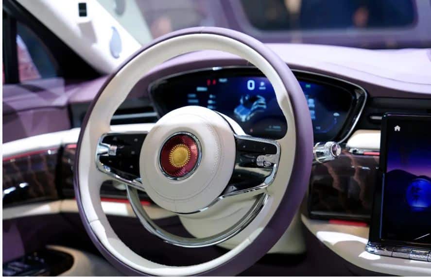 Del auto de exhibición de 4 plazas en el Salón del Automóvil de Beijing, hay dos asientos independientes en la parte trasera con reposabrazos y portavasos en el centro. Además, de la pantalla táctil en la parte delantera se puede controlar algunas funciones del vehículo como la calefacción del asiento, el masaje y la temperatura del aire acondicionado. Otras configuraciones incluyen una Pantalla Frontal de Realidad Aumentada (AR-HUD), modos de interacción multimodo de rostro/voz/gestos y ajuste inteligente de la luz ambiental.