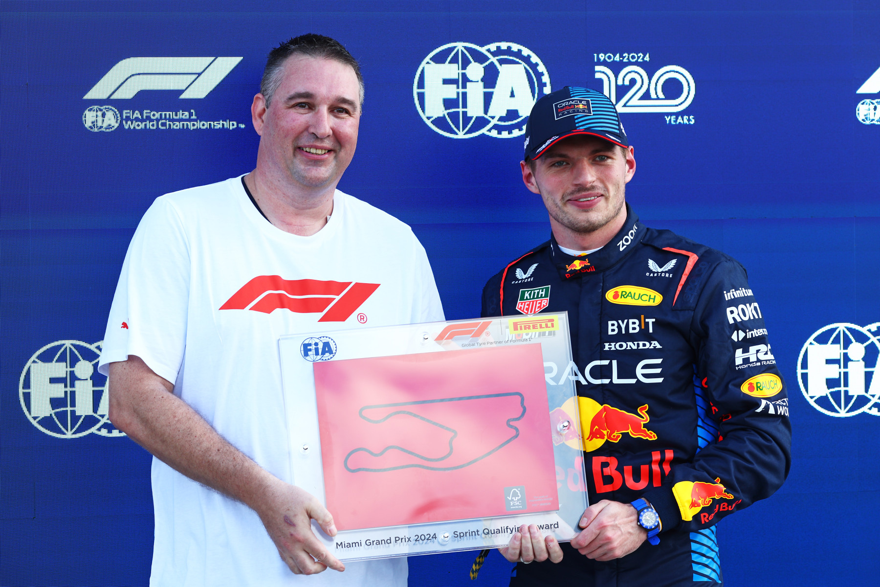 El premio Pirelli Pole Position fue entregado a Verstappen por el productor de cine y televisión Jerry Bruckheimer. Entre sus éxitos, como coproductor con Don Simpson, se encuentran títulos como Flashdance, Top Gun y Bad Boys. Desde los años 2000, algunas de las películas que ha firmado son Piratas del Caribe, Pearl Harbor y la reciente Top Gun: Maverick, junto a las series de televisión CSI, Cold Case y Without a Trace. Bruckheimer es uno de los productores de la película de Fórmula 1 – dirigida por Joseph Kosinski y con Brad Pitt como protagonista principal – cuyo estreno está previsto para 2025.