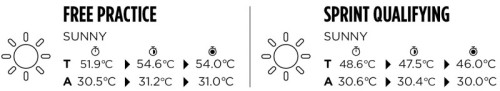 En cuanto a las estrategias, la carrera de mañana no deja lugar a dudas : la parada única es claramente la opción más rápida. Sin embargo, las cosas son diferentes en cuanto a los compuestos y su orden de uso. Si el C4 resultó ser más difícil de leer para los pilotos en la vuelta rápida, en cambio resultó (la carrera Sprint de hoy lo confirmó) una opción que no debe descartarse para el Gran Premio de mañana por la tarde. El C2 será sin duda el protagonista absoluto, pero todas las combinaciones con el C3 o el C4 son viables sobre el papel».