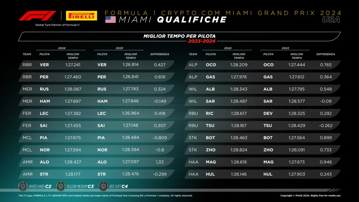 A continuación el análisis de Pirelli de la clasificación para el GP Miami 2024