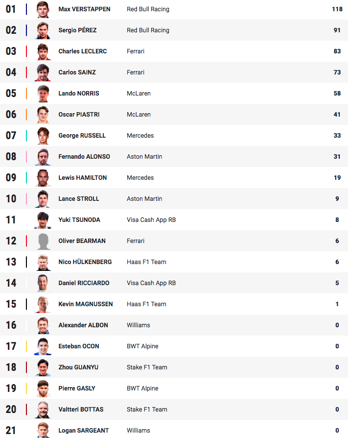 El neerlandés saldrá este domingo a las 15.00 horas (Perú, México, Ecuador y Colombia) delante de Charles Leclerc y Carlos Sainz . Max partió desde la pole y ganó el sprint temprano, pero Leclerc ofreció una amenaza desde la línea de partida y se mantuvo muy cerca del Red Bull durante toda la carrera y solo en la última vuelta la brecha se expandió más allá de los tres segundos.