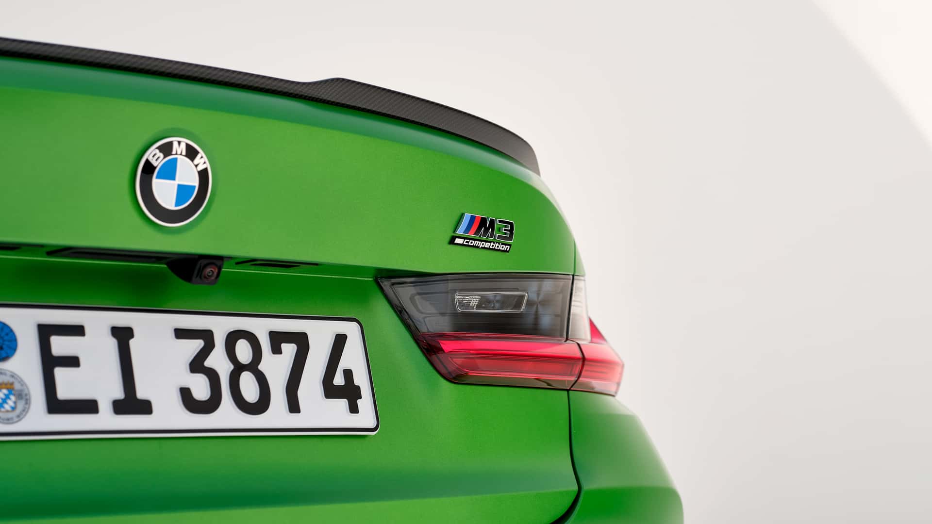 Una caja de cambios automática de ocho velocidades canaliza la potencia en los modelos Competition, mientras que BMW ofrece el M3 de tracción trasera estándar con una manual de seis velocidades. Las pinzas delanteras de seis pistones y las traseras de un solo pistón brindan potencia de frenado, y los frenos cerámicos M Carbon opcionales pesan aproximadamente 30 libras menos que los discos estándar.