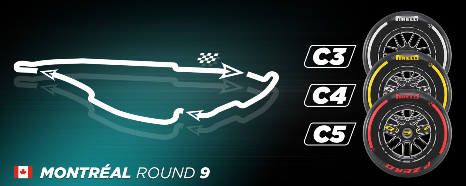 Para este año se ha repavimentado toda la pista y se han sustituido los bordillos. Sobre el papel, las características actuales de la pista de baja abrasividad y, por lo tanto, agarre reducido deberían seguir siendo las mismas, pero las indicaciones reales tendrán que esperar hasta que los ingenieros de Pirelli lleven a cabo sus primeras pruebas de medición el miércoles. Durante la mayor parte del año, la pista sólo es utilizada por personas a pie o ciclistas, por lo que los tiempos de vuelta generalmente disminuyen significativamente a medida que los autos se pegan a la superficie. También podría producirse granulado, especialmente el viernes y especialmente con los compuestos más blandos. Los neumáticos están sometidos a fuerzas laterales muy bajas, aunque las longitudinales son mayores, pero en general Montreal es una de las pistas de la temporada más fáciles para los neumáticos.