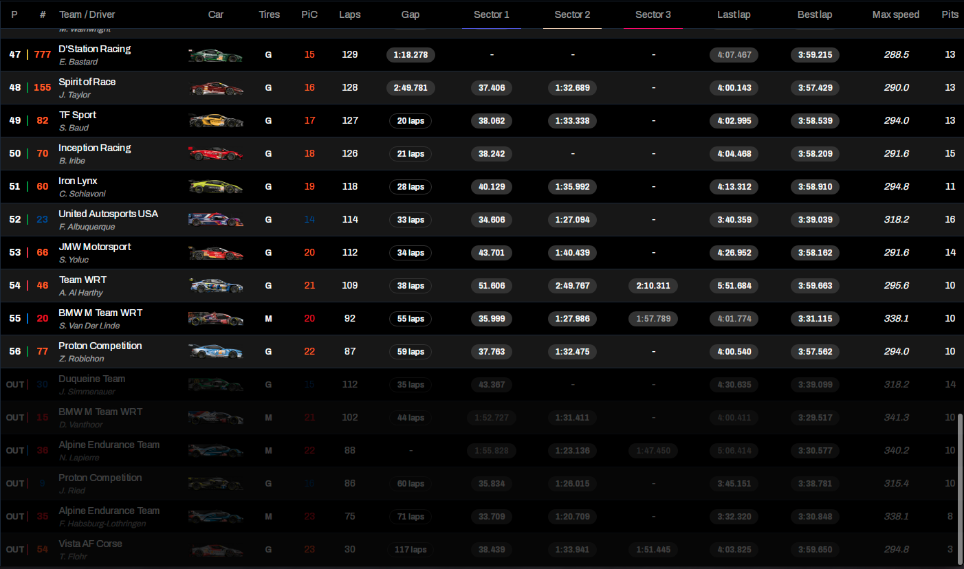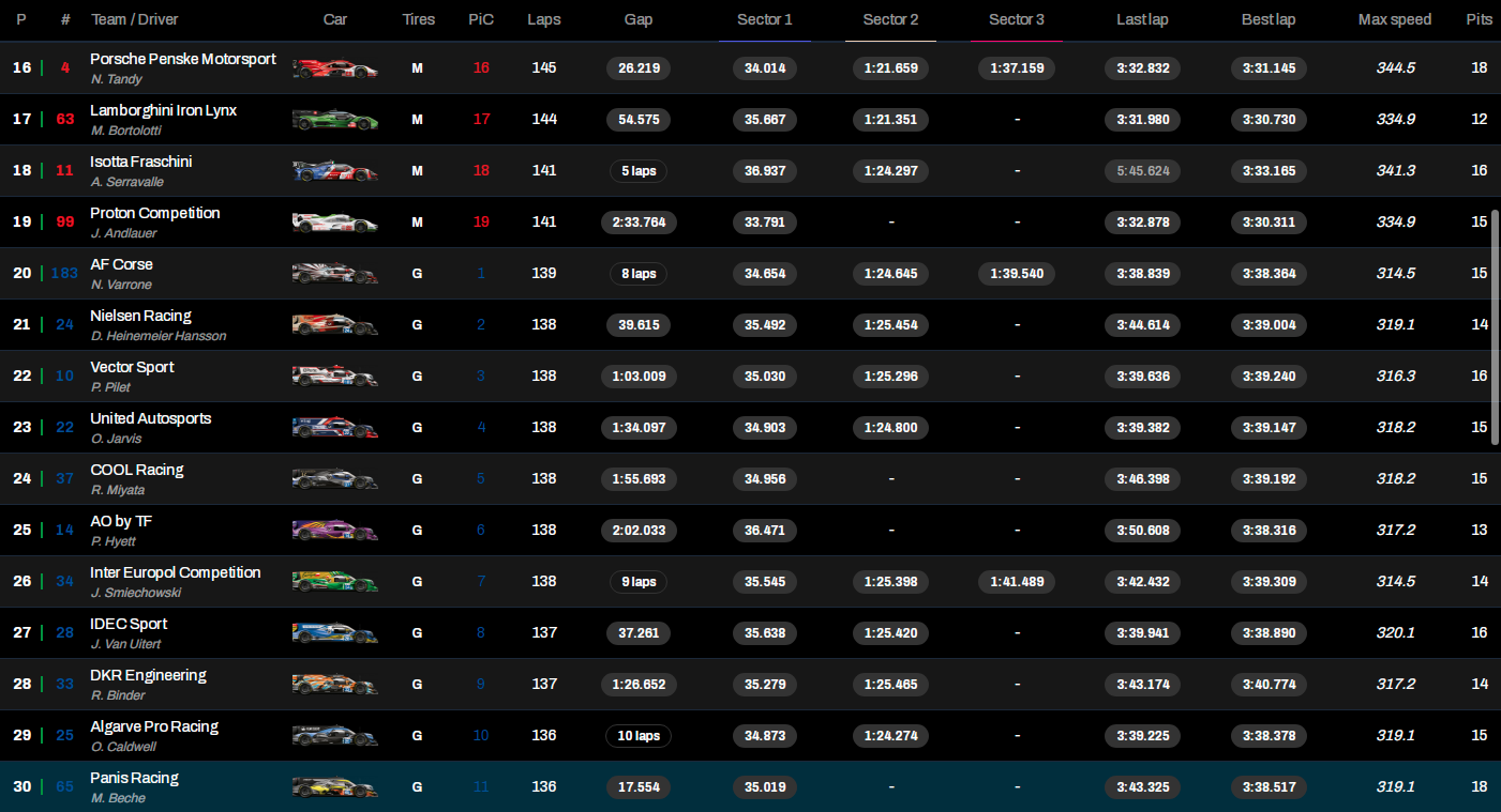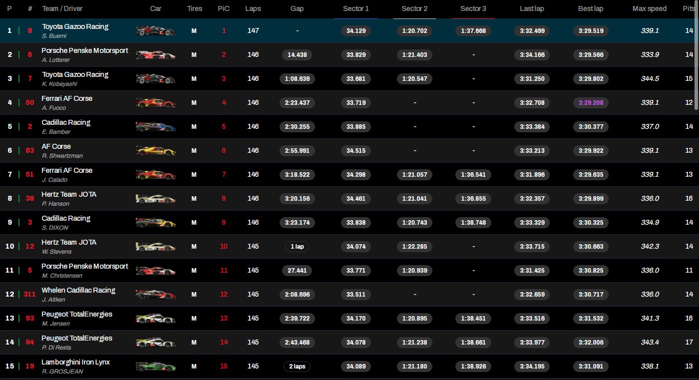 Pueden seguir la evolución del ranking en directo a través del Live Timing oficial del WEC, disponible aquí.