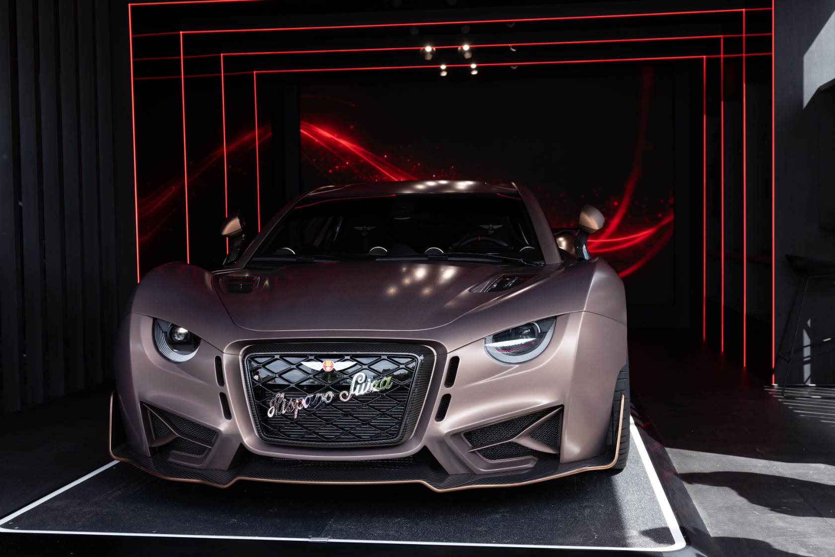 El día de apertura del evento, la emblemática marca española mostró a los medios de comunicación y autoridades su última creación en su stand. La presentación fue conducida por la modelo y piloto británica Jodie Kidd, junto al CEO de Hispano Suiza Sergio Martínez Campos, el responsable de diseño Francesc Arenas y el CTO Juan Fernández. Los asistentes pudieron conocer en profundidad las numerosas novedades que incorpora el nuevo modelo Carmen.