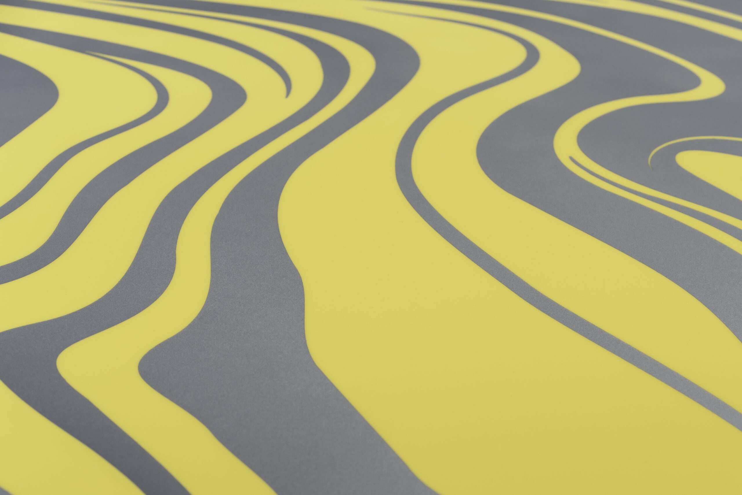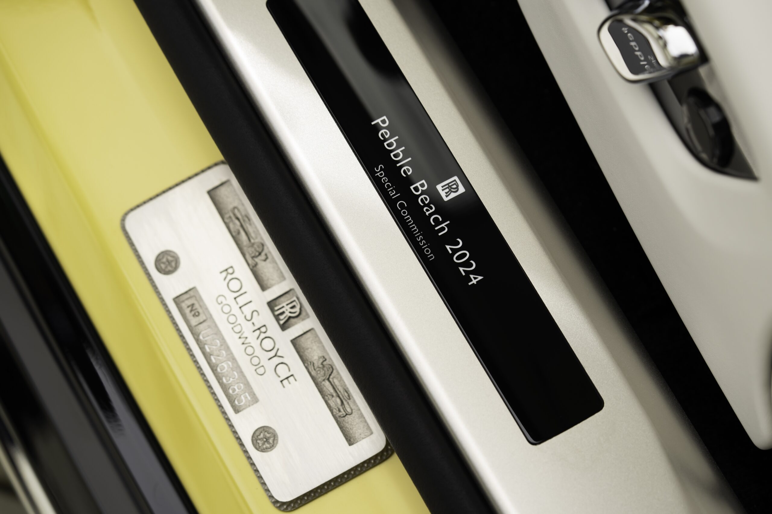 La carrocería exterior está acabada en amarillo semáforo Bespoke, el color que da nombre a este encargo. Este tono sólido se realza aún más con una obra de arte única en el capó, inspirada en la elegancia informal de la costa de California. El gráfico, llamado «Marbled Paint Spill», es un homenaje abstracto al Estado Dorado y su entorno diverso. Desde el sol del sur de California hasta las cimas plateadas de las montañas del este, los artesanos de Bespoke han hecho realidad esta inspiración.