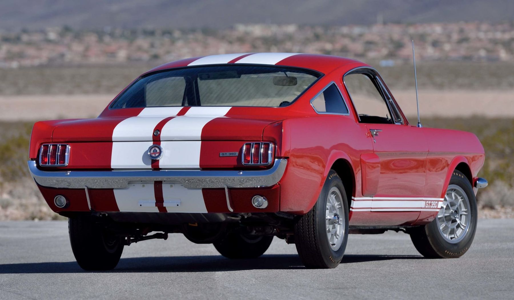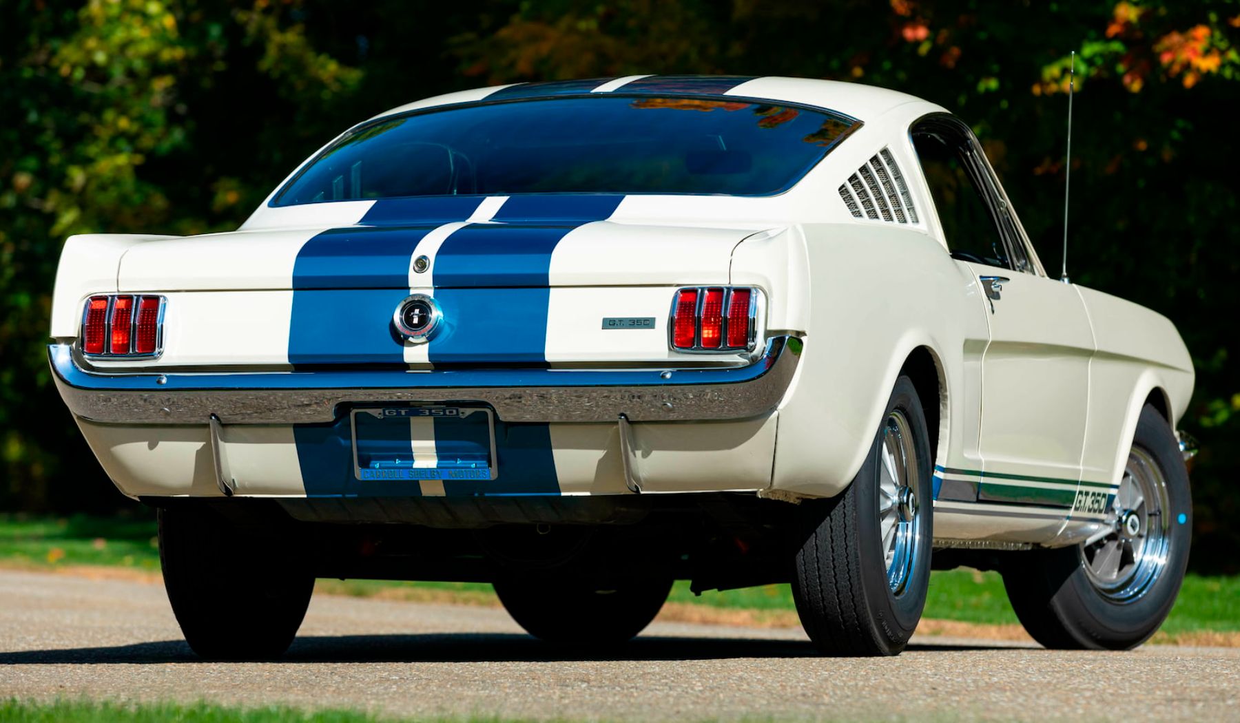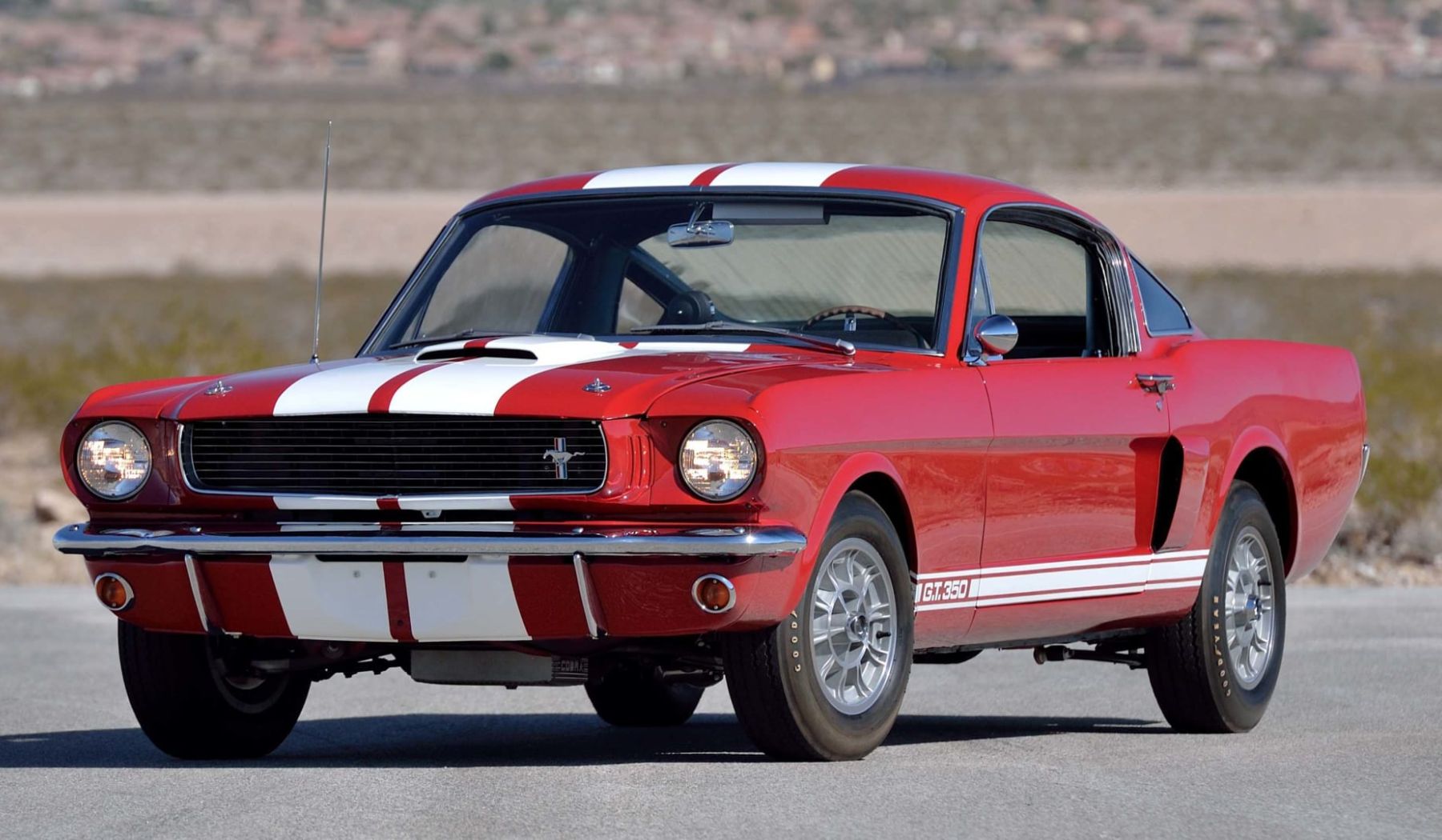 Mientras Ford añadía el paquete GT y ponía a disposición el 289 HiPo «K-code» como el V8 de máximo rendimiento en Venice, California, el legendario Carroll Shelby y su talentoso equipo desarrollaron el primer Mustang de rendimiento pura sangre. El GT350 fastback de dos puertas, con un acabado en Wimbledon White y franjas laterales en Guardsman Blue, recibió numerosas mejoras en el chasis y la carrocería que mejoraron la maniobrabilidad y redujeron el peso.