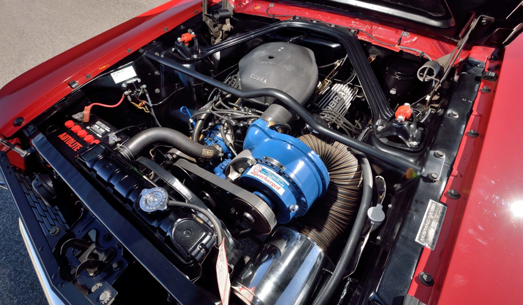 Ford Mustang GT 350 de 1966 | Foto: MecumUn año después, el GT350 recibió una serie de mejoras para hacer frente a las mejoras de rendimiento de los fabricantes de automóviles rivales, incluido un supercargador Paxton opcional que aumentó la potencia del V8 HiPo de 289 ci (4,7 litros) tuneado por Shelby de 306 CV a nada menos que 440 CV. En su número de agosto de 1966, la revista Car Life probó un GT350 supercargado de Paxton, y el resultado fue una impresionante carrera de un cuarto de milla en 14 segundos a 92 mph (148 kph).