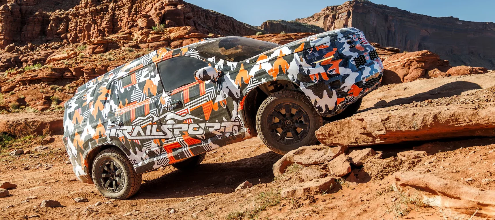 Honda ha estado promocionando el Passport 2026 solo en su versión todoterreno extrema Trailsport. Creemos que tiene sentido que la marca comience con su variante Passport más ambiciosa; el Passport Trailsport actual es un modelo intermedio, con neumáticos más robustos y algunas otras mejoras menores. Honda ha dicho que el modelo de próxima generación (la versión que ves aquí) será mejorado más a fondo como el Pilot Trailsport más nuevo, más apropiado como el pináculo de la capacidad todoterreno de la familia Passport.