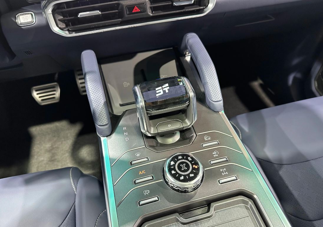 El interior sigue el diseño de la versión de dos ruedas motrices, con un cuadro de instrumentos LCD de 10,25 pulgadas, una pantalla de control central flotante de 15,6 pulgadas impulsada por un chip Qualcomm Snapdragon 8155, un volante multifunción de cuatro radios, salidas de aire acondicionado rectangulares y asientos de símil cuero.