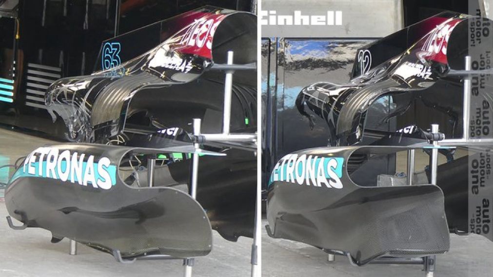 El sábado, Russell sufrió un fuerte accidente en la penúltima curva y dañó tanto el auto que Mercedes tuvo que cambiar las especificaciones y trabajar durante horas en el parque cerrado para prepararlo para la carrera. Eso provocó que Russell tuviera que salir desde los boxes y el director del equipo, Toto Wolff, dice que no hay suficientes repuestos del paquete introducido el fin de semana pasado para permitir que ambos pilotos utilicen la actualización en México.