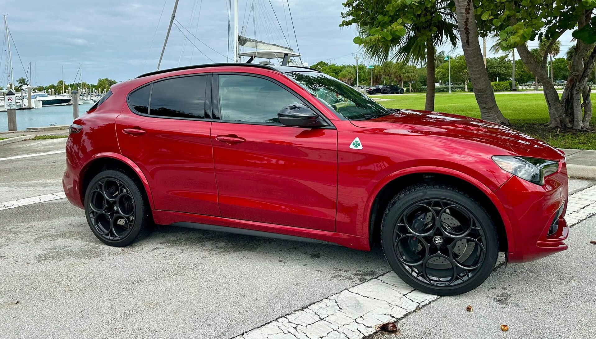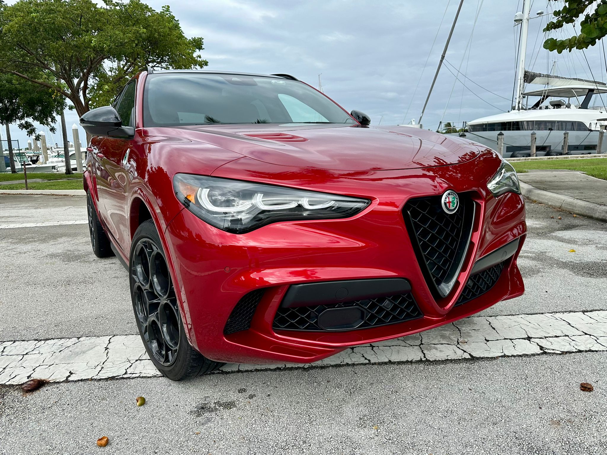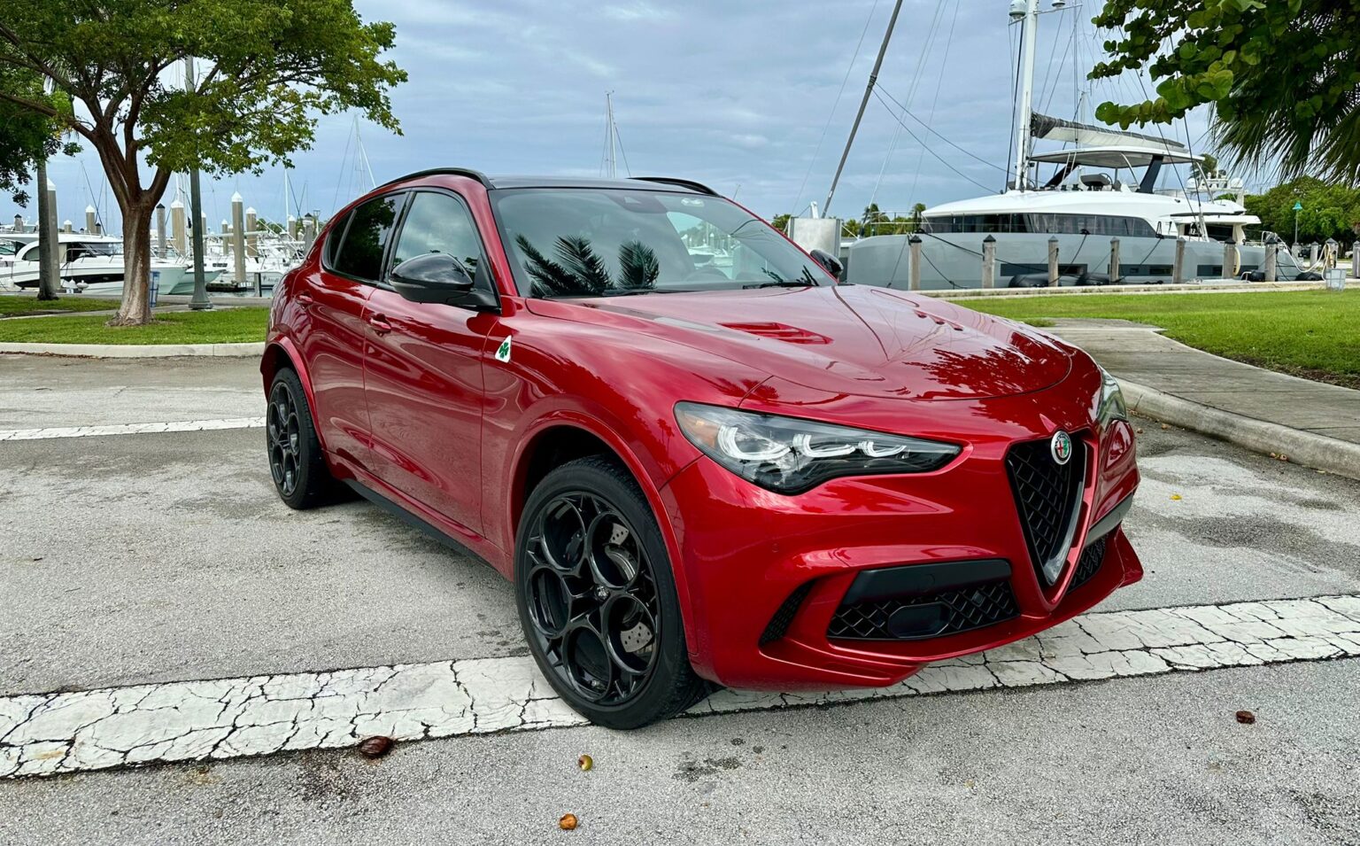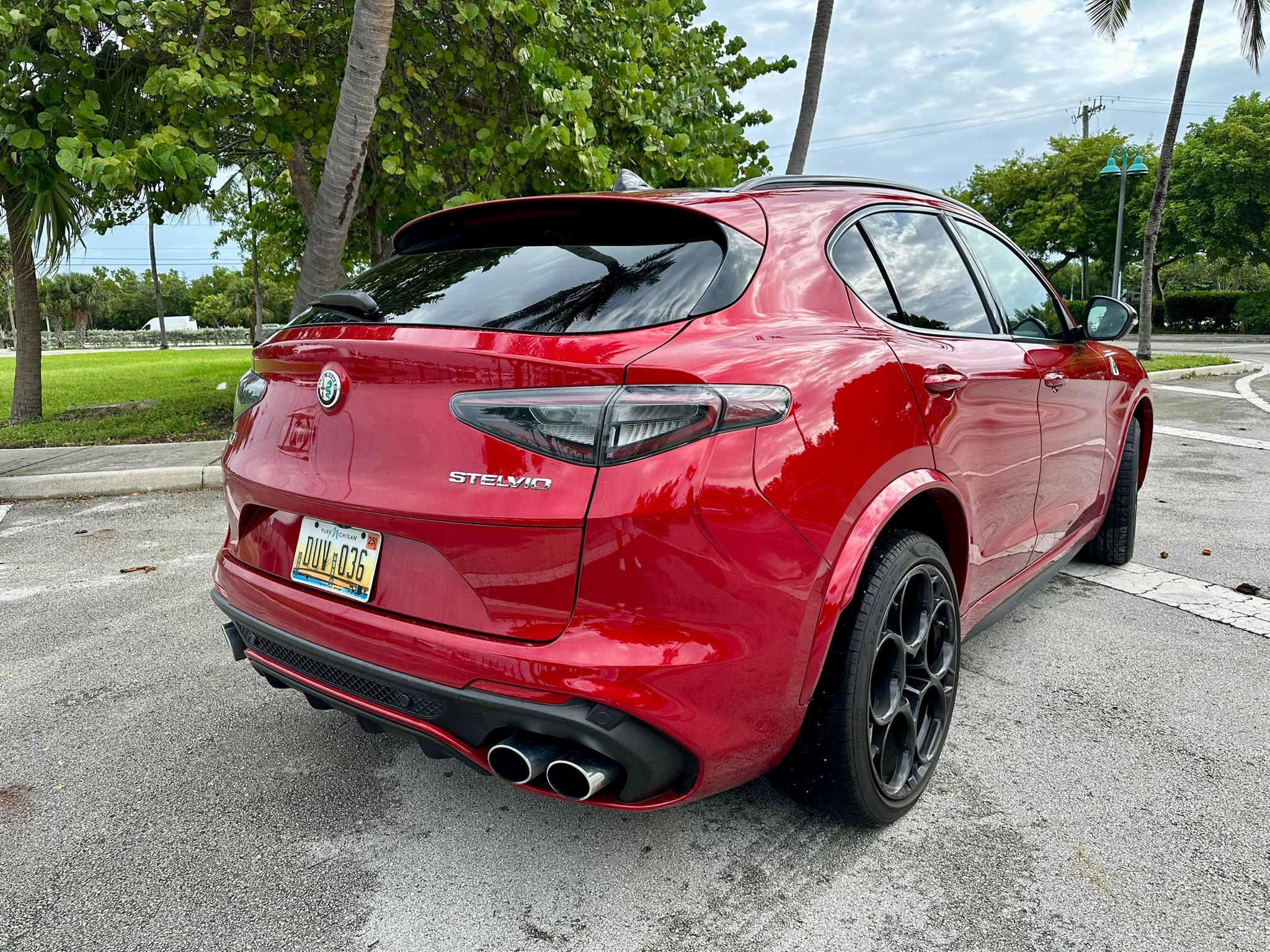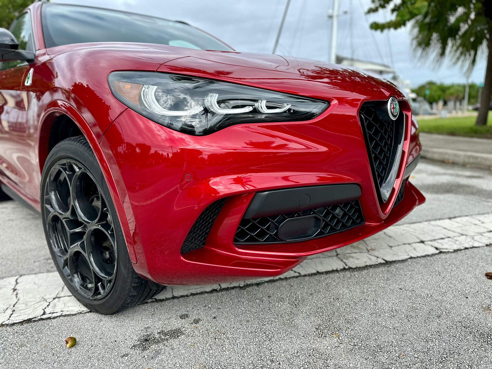 En cuanto a su diseño exterior, mantiene las líneas deportivas y aerodinámicas que caracterizan a la marca. Los detalles en negro, el distintivo logotipo del trébol de cuatro hojas (Quadrifoglio), las salidas de escape cuádruples y las llantas de aleación ligera de 21 pulgadas complementan la apariencia agresiva y sofisticada del SUV. Cada detalle ha sido cuidadosamente pensado para ofrecer una imagen inconfundible y, al mismo tiempo, mejorar el rendimiento aerodinámico.