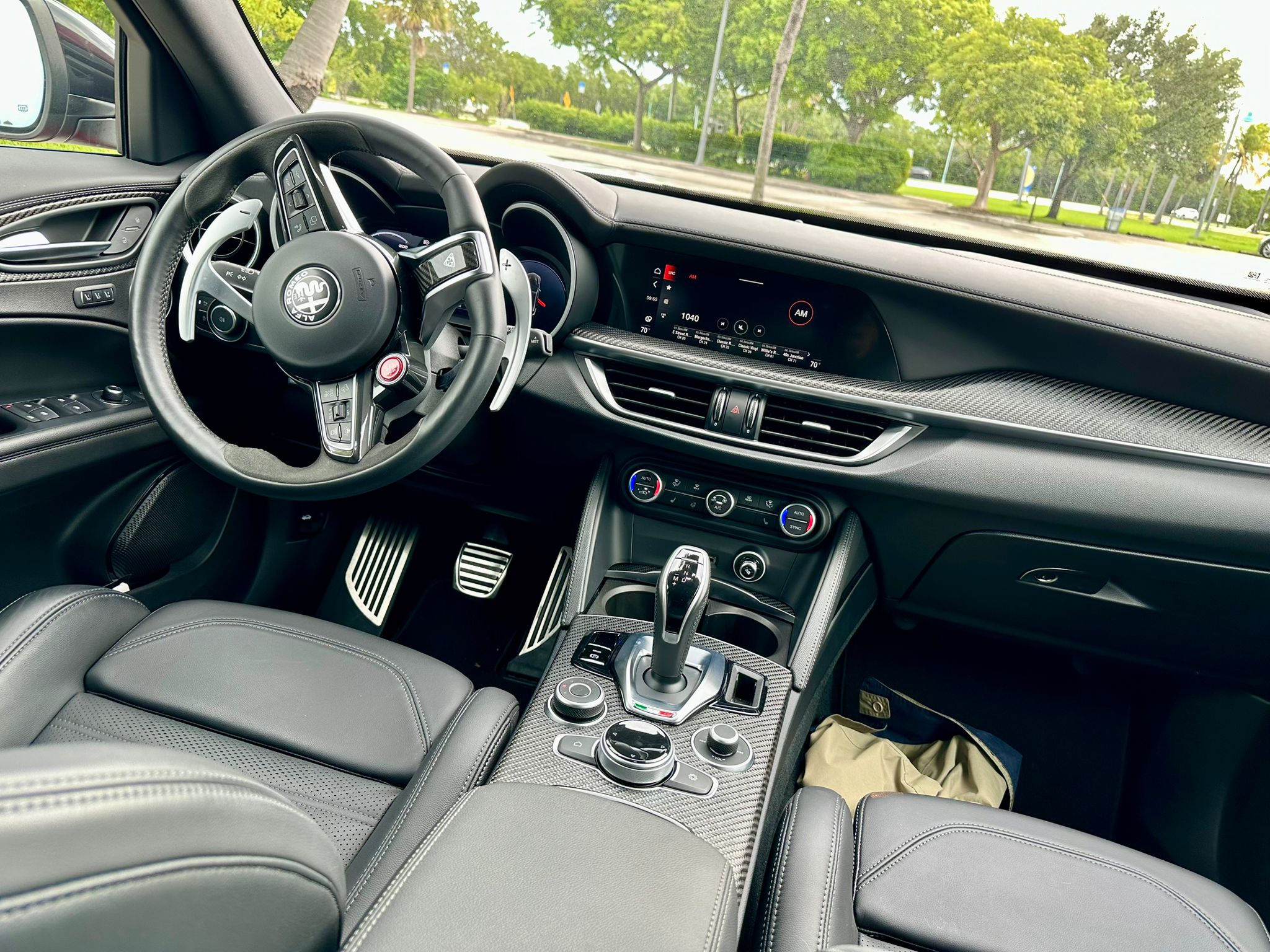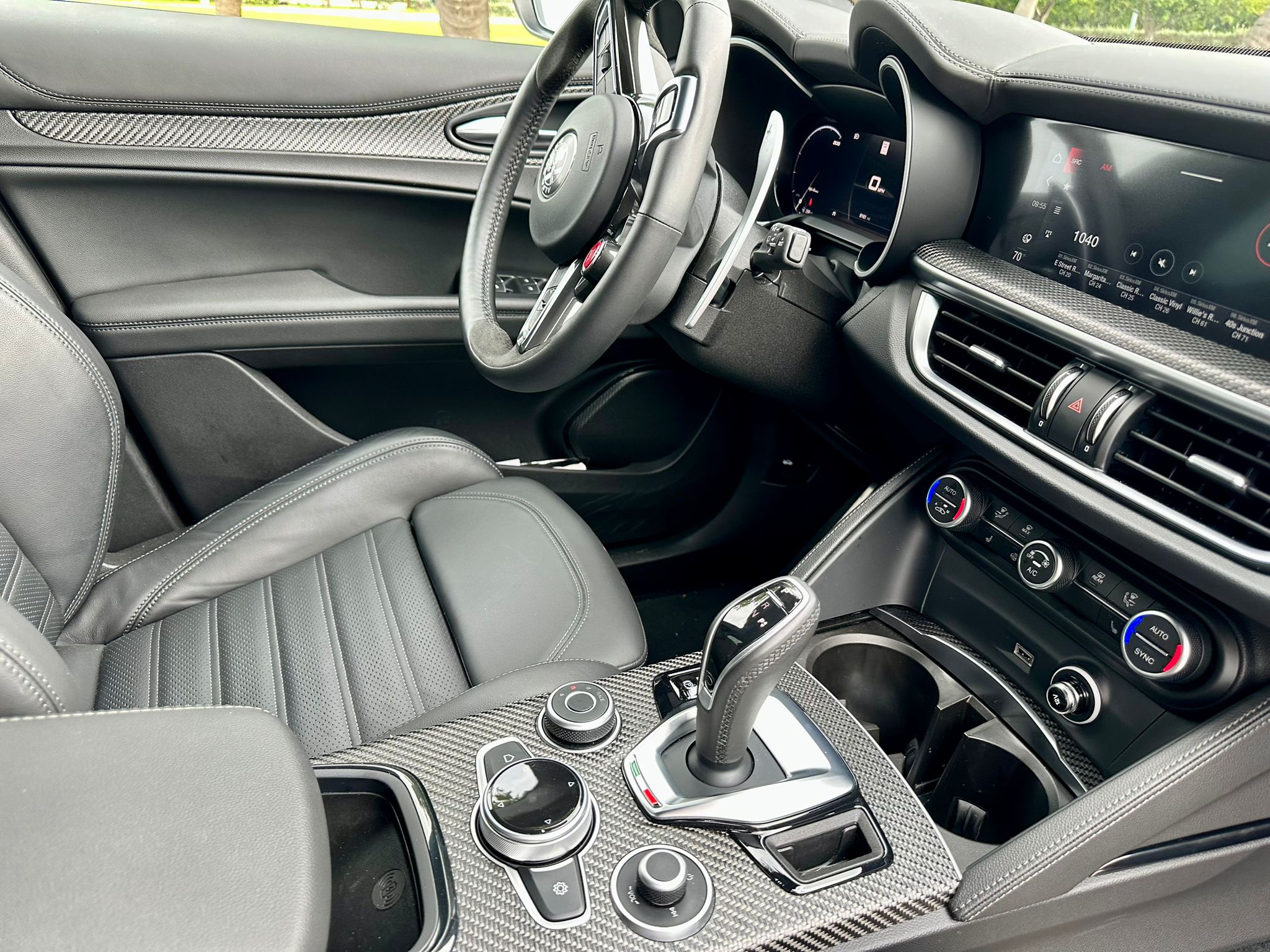 En el interior, este modelo no escatima en lujo y detalles Premium. Los asientos deportivos de cuero y Alcántara, con costuras en contraste y el logotipo de Quadrifoglio en los reposacabezas, no solo ofrecen un confort excepcional sino también un soporte adecuado para la conducción dinámica. Los materiales de alta calidad, como la fibra de carbono, están presentes en todo el habitáculo, reforzando la sensación de exclusividad y deportividad que Alfa Romeo ha querido transmitir en cada rincón del vehículo.