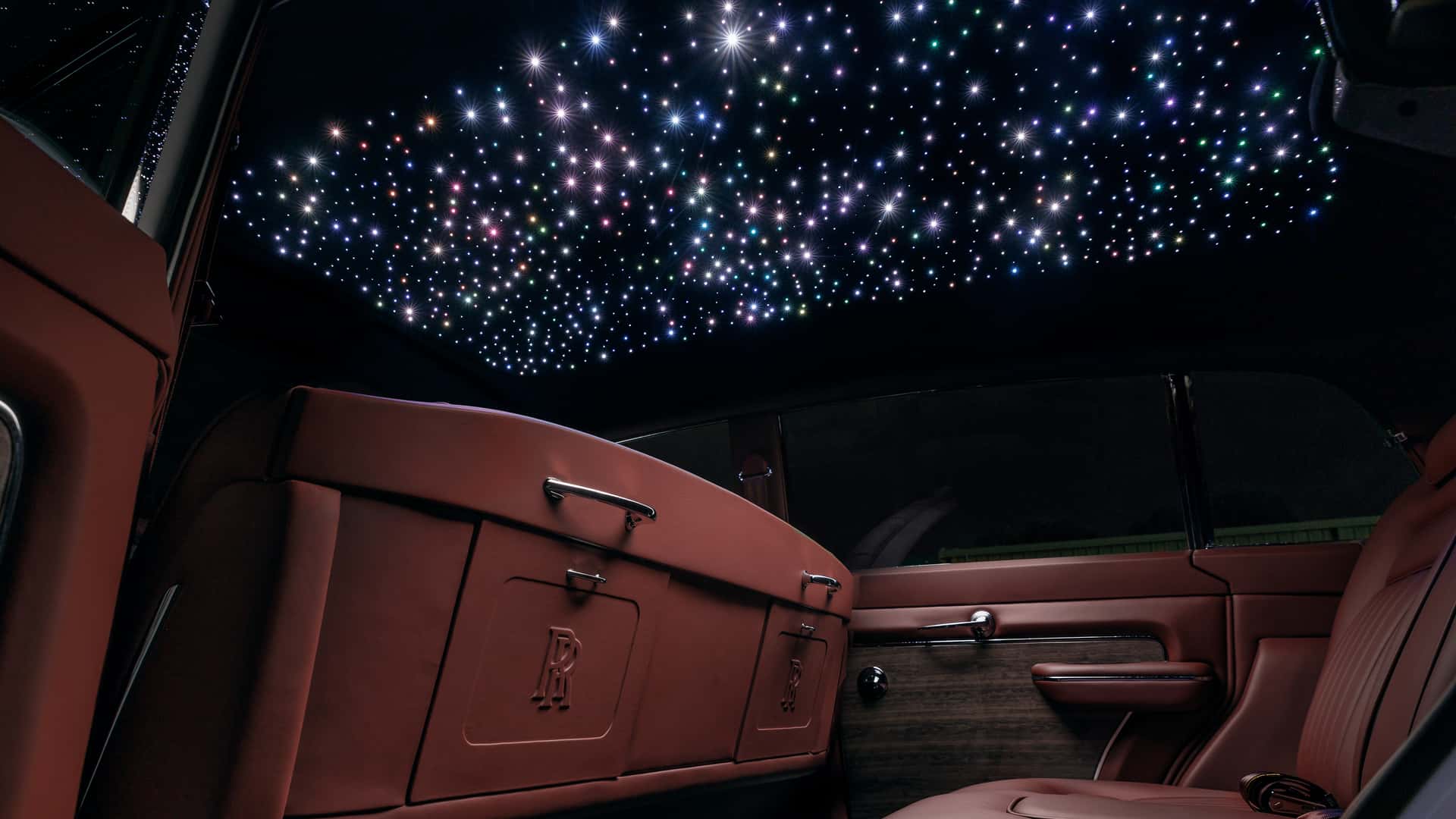 El interior conserva un aspecto similar al del vehículo original, pero Ringbrothers añade un revestimiento interior con luces de estrellas y más de 1,000 LED, como los que Rolls-Royce ofrece en sus productos actuales.
