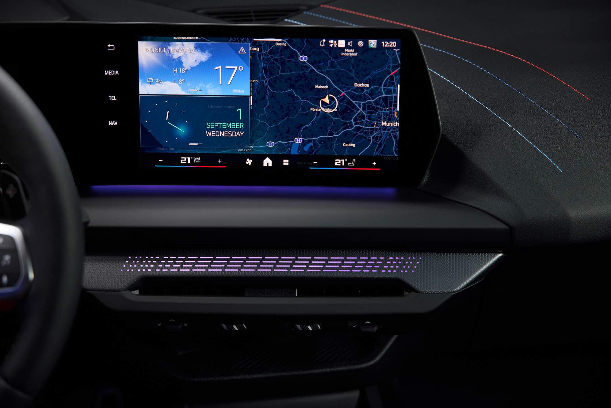 El habitáculo incorpora la pantalla curva de BMW, que ahora funciona con el sistema operativo 9. Sin embargo, al igual que el X1, no depende de los controles de la consola central, que se componen principalmente de una rueda de clic. Esta pantalla es únicamente táctil.