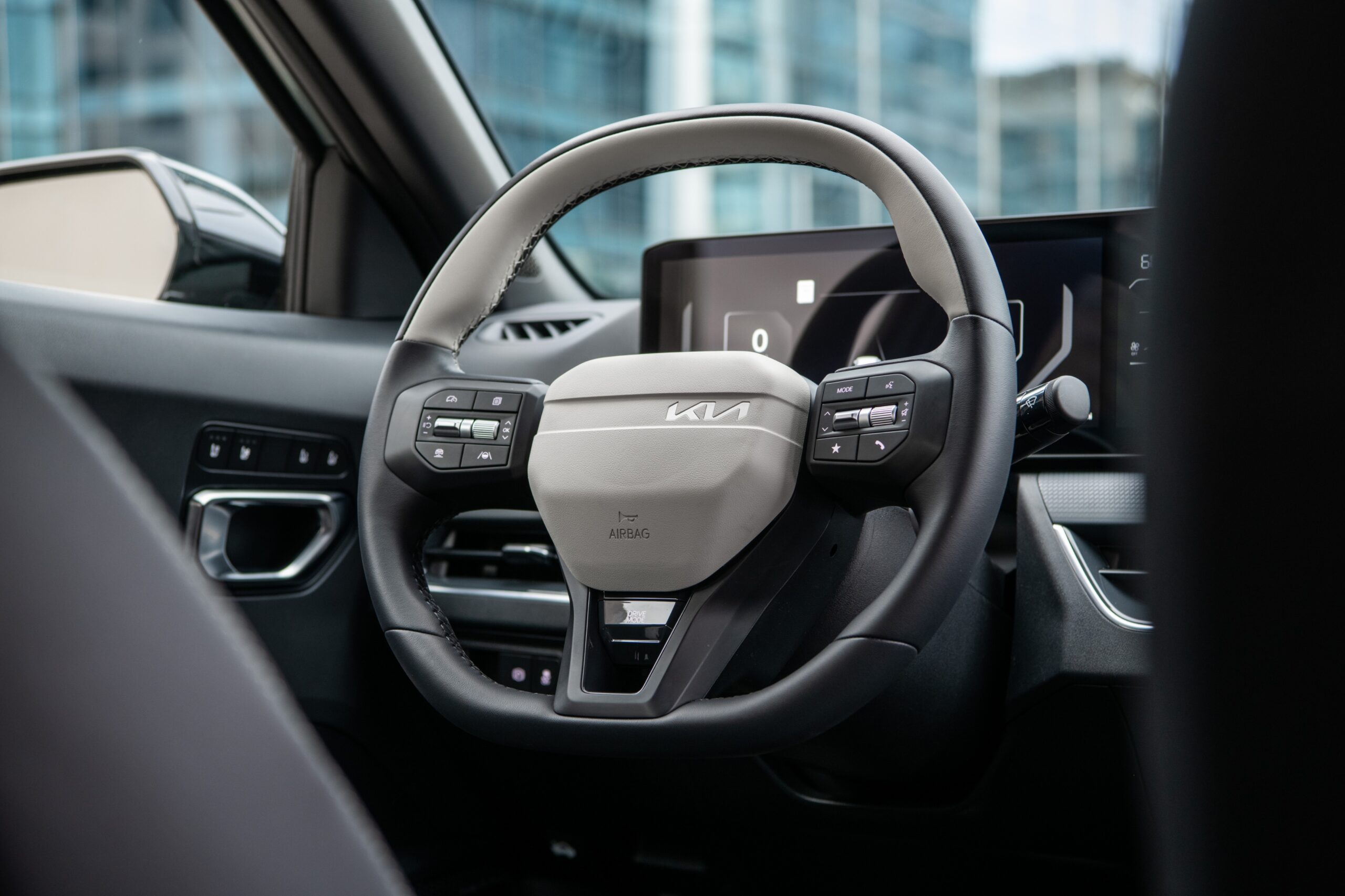 El espacioso interior del K4 está disponible en gris medio (LX/LXS/EX) o verde pizarra (EX). El GT-Line llega con un interior de tela/cuero sintético en combinación Onyx/Off-White o se puede equipar con cuero sintético disponible en Onyx/Off-White. El GT-Line Turbo viene de serie con cuero sintético en Onyx/Off-White. Tanto el GT-Line como el GT-Line turbo ofrecen un paquete interior rojo disponible con alojamientos de cuero sintético Onyx y Rojo. Los asientos delanteros con calefacción son estándar en el K4 GT-Line y superiores, y los asientos ventilados, así como la función de memoria del asiento del conductor, son opcionales. Un volante de tres radios es exclusivo de los modelos K4 GT-Line.