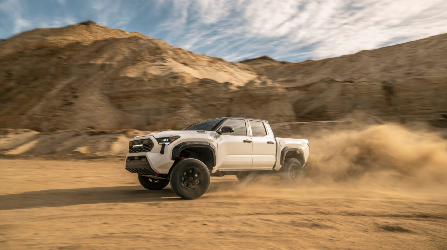 El TRD Pro, inspirado en las carreras de Baja, también es un modelo exclusivo i-FORCE MAX que ofrece los primeros asientos delanteros de rendimiento IsoDynamic de serie en el segmento, que utilizan un sistema de amortiguación de aire sobre aceite que permite el movimiento vertical y lateral del asiento simultáneamente para ayudar a reducir el movimiento del cuerpo y estabilizar la cabeza y el cuello para mantener la alineación con la columna vertebral. El TRD Pro también incluye características estándar adicionales como amortiguadores de derivación interna ajustables TRD-Tuned FOX Quick Switch 3 (QS3) con depósitos traseros remotos, una entrada de aire de alto rendimiento TRD, neumáticos Goodyear de 33 pulgadas con llantas de aleación negras de 18 pulgadas y pintura exterior de dos tonos disponible.