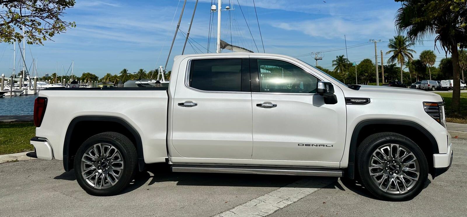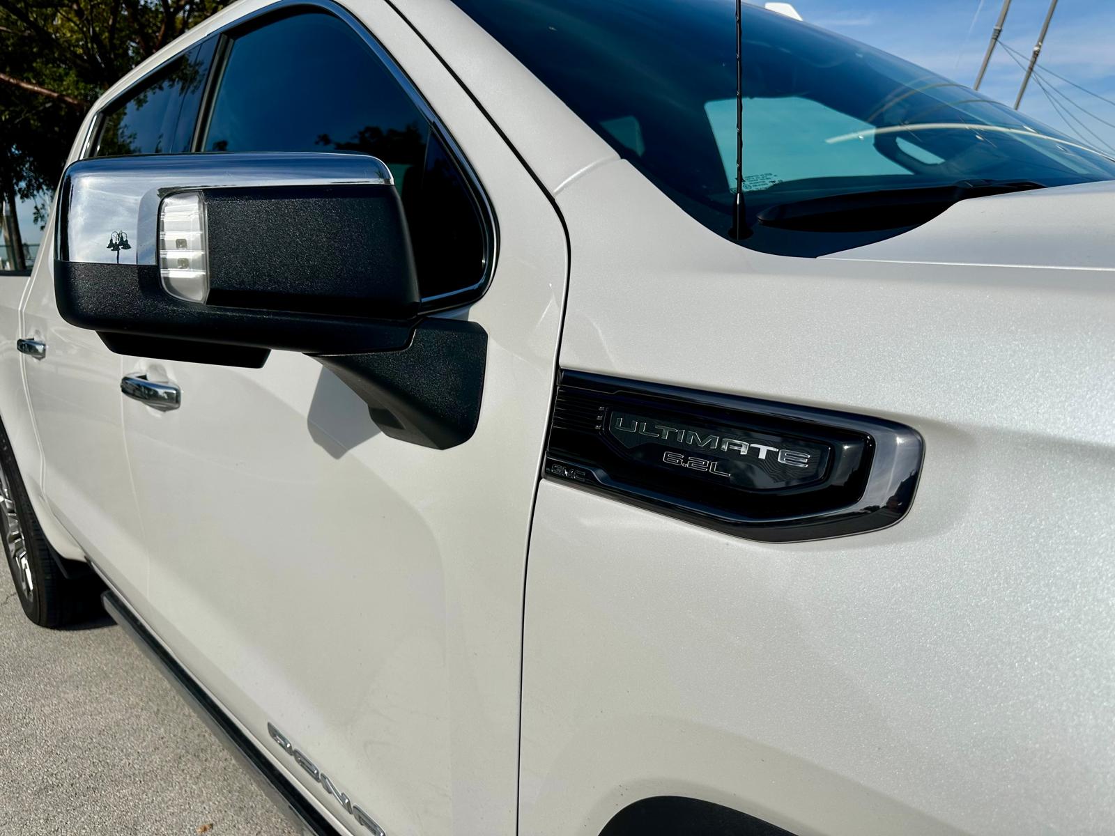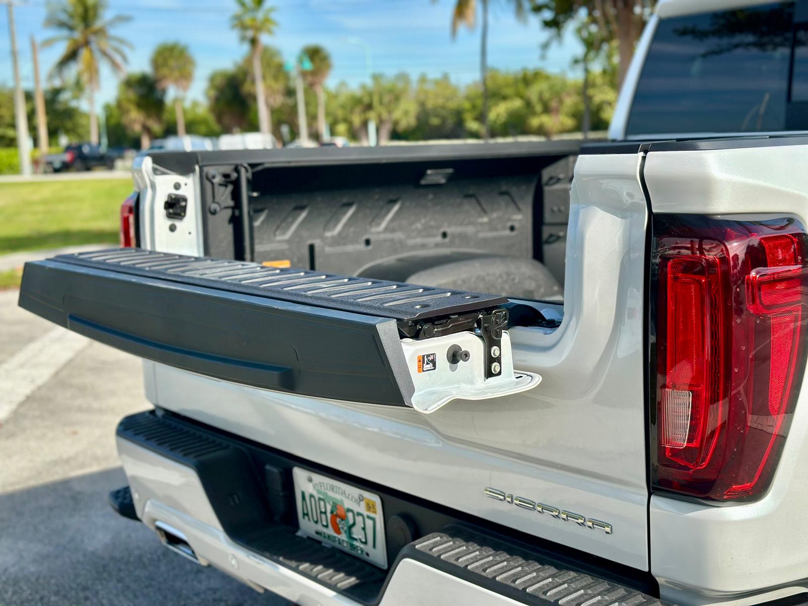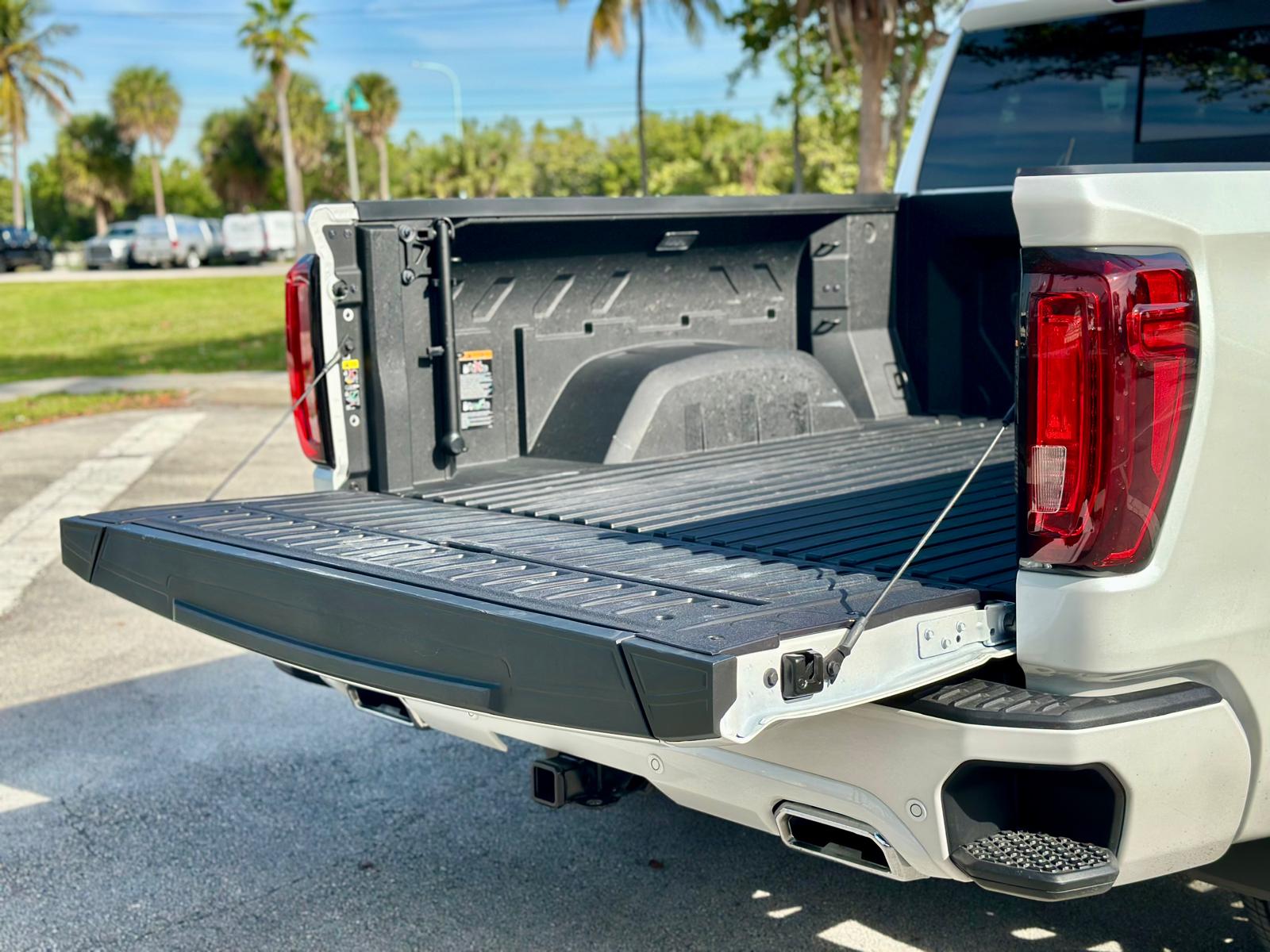 El diseño exterior destaca por sus detalles Premium y acabados exclusivos. La parrilla frontal presenta un acabado cromado en «Vader Chrome», que le da un toque moderno y sofisticado. Las llantas de 22 pulgadas con un diseño único complementan su apariencia robusta, mientras que detalles como los escalones eléctricos retráctiles y los emblemas Denali Ultimate resaltan su exclusividad. La caja de carga también incluye innovaciones como el sistema MultiPro Tailgate, que ofrece múltiples configuraciones para facilitar el acceso y el transporte.