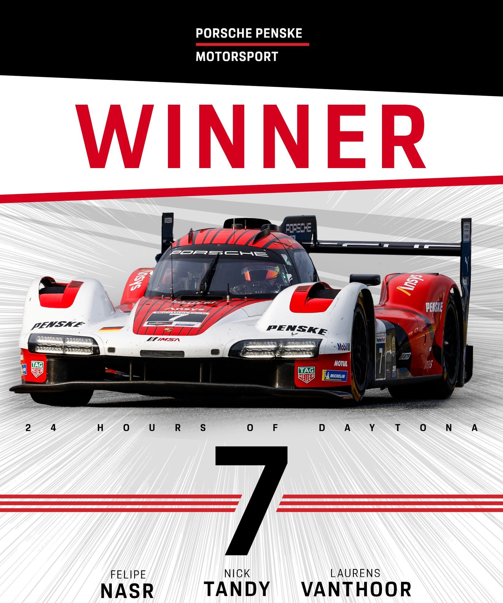 Finalmente, Felipe Nasr , con el número 7, salió victorioso tras una intensa batalla entre los dos Porsche 963 por el liderato, mostrando precisión y resistencia. A pesar de las complicaciones de tráfico en los compases finales, el auto hermano número 6 pasó el segundo puesto, pero consiguió un meritorio tercer puesto. Para Nasr, esta victoria supuso su segundo triunfo consecutivo en Daytona. Vanthoor y Tandy celebraron sus primeras victorias generales en este prestigioso evento. Tandy también logró un hito histórico, al convertirse en el primer piloto en ganar las cuatro principales carreras de resistencia de 24 horas: Le Mans, Spa-Francorchamps, Nürburgring y Daytona.