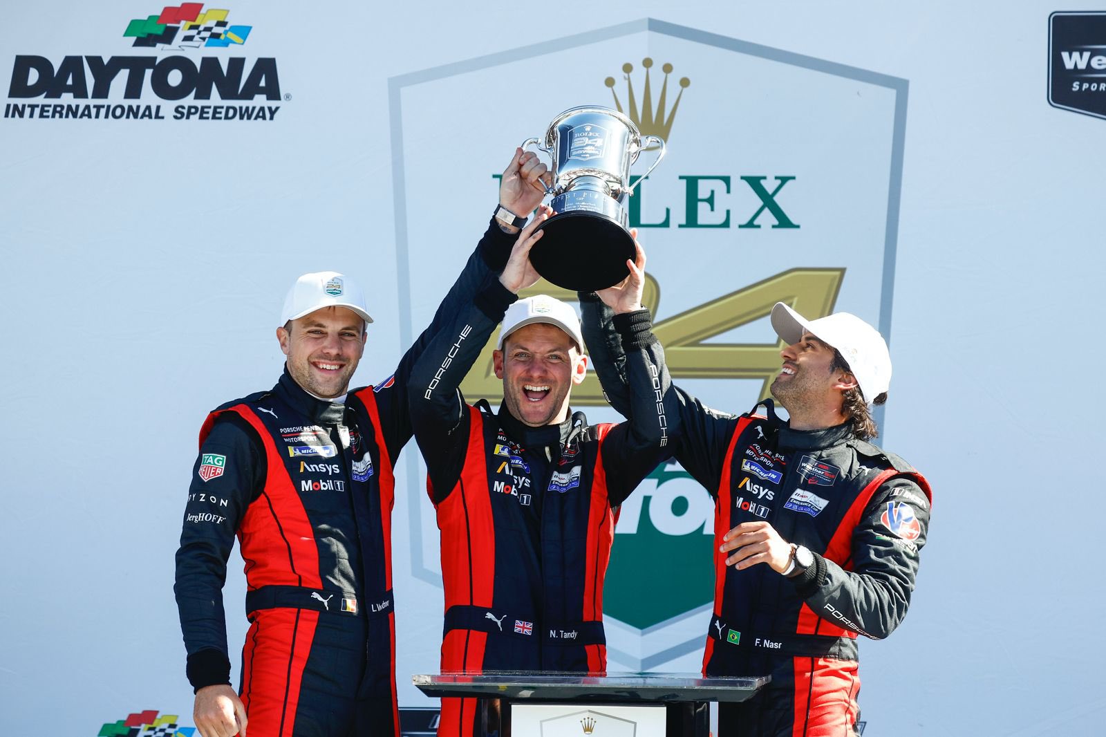 Nick Tandy (Porsche 963 Nº 7): «Estoy muy orgulloso de haber ganado esta carrera con Porsche. Hace una vez años fue la última vez que subí a lo más alto del podio de Daytona: entonces en la clase GT con un Porsche rojo y blanco y esta vez de nuevo con un Porsche rojo y blanco. Tres años de duro trabajo nos han traído hasta aquí. Lo hemos conseguido todos juntos. En algún momento, hace años, alguien me dijo que nadie había conseguido nunca la victoria general en las cuatro. carreras de 24 horas más importantes. Desde aquel día, este objetivo ha estado en mi mente. Ahora se ha hecho realidad. Es una sensación estupenda ser la primera persona en lograr algo así».