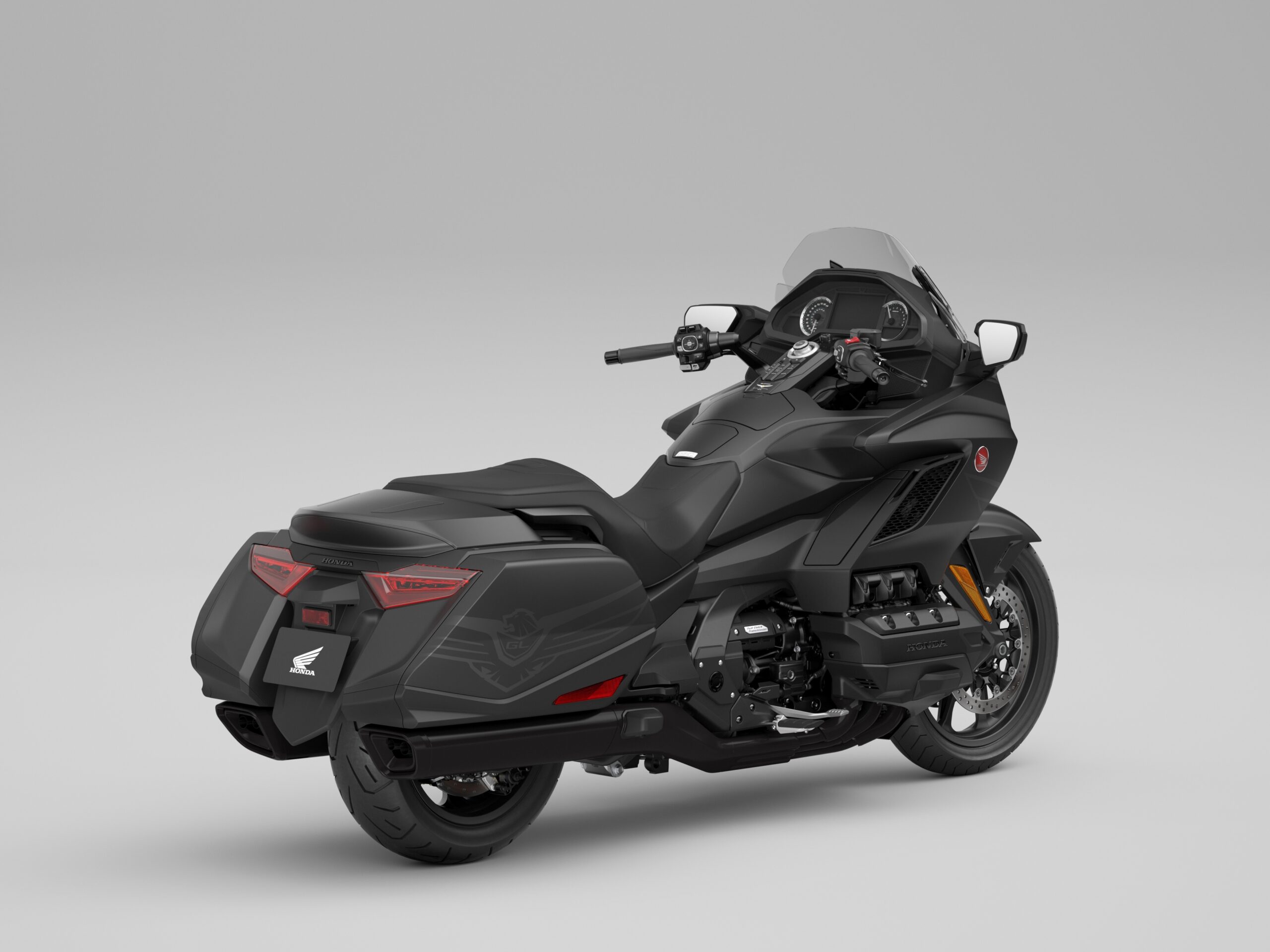 No sería una fiesta de cumpleaños adecuada sin la presencia de las versiones estilo «bagger» de la Gold Wing, que siguen la tradición de modelos anteriores sin baúl como la Valkyrie y la F6B. Disponible con una caja de cambios manual o con la avanzada transmisión de doble embrague de Honda, la Gold Wing estándar se ofrece para 2025 en un color negro mate metalizado y, para conmemorar el hito de medio siglo de la plataforma, viene con varios tratamientos de estilo, incluidos los llamativos logotipos Gold Wing en las alforjas y los carenados laterales. Además, hay una insignia especial del 50.º aniversario situada delante del asiento, y la «ceremonia de apertura» del medidor ahora muestra «Desde 1975» cuando se enciende la motocicleta. Como antes, el estándar Gold Wing tiene un parabrisas más corto que las versiones Tour y, para 2025, ahora se puede acceder a Apple CarPlay y Android Auto de forma inalámbrica.