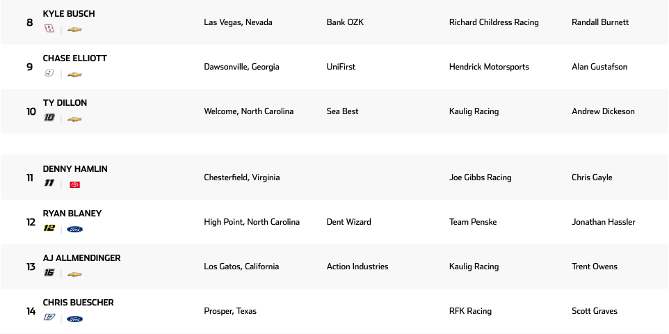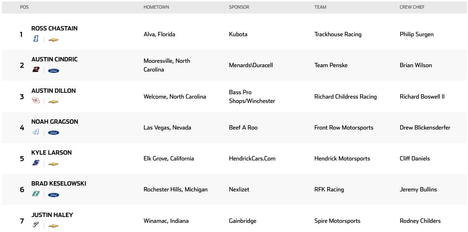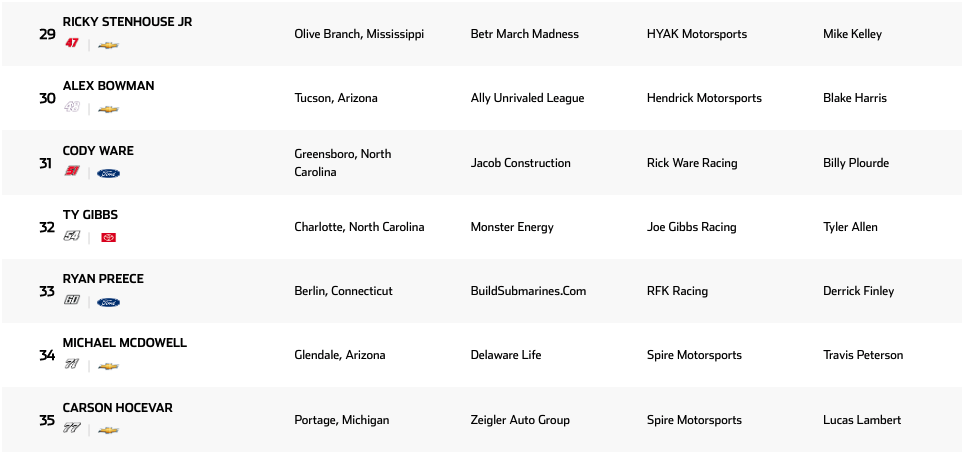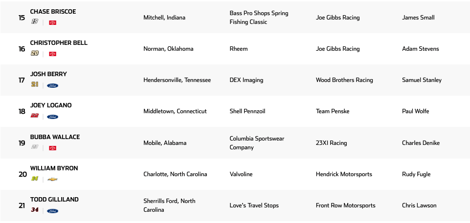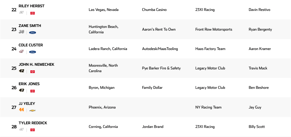 Lista de inscritos | Homestead-Miami Speedway Cup Series 2025