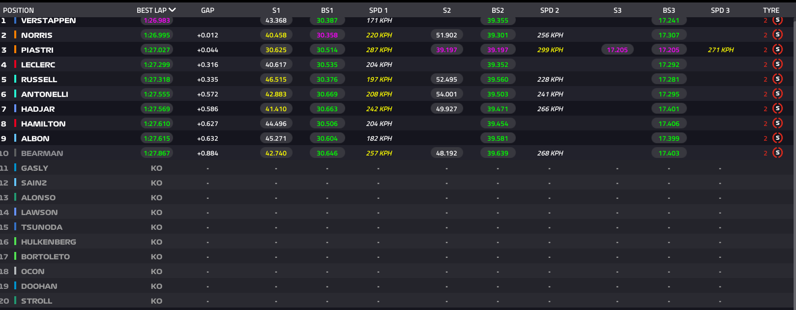 En la Q2, el neerlandés se deshizo de su compañero Yuki Tsunoda, al que le sacó medio segundo. Sin embargo, el piloto japonés tuvo un comienzo de fin de semana talentoso, logrando mantenerse cerca de Verstappen en algunas vueltas, especialmente en la Q1, donde estuvo en el mismo tiempo que el cuatro veces campeón del mundo. Aún más frustrante: Tsunoda, 15º, terminó detrás de Liam Lawson, 14º, a quien acaba de reemplazar en Red Bull. El neozelandés logró su mejor clasificación del año, pero fue más lento que Isack Hadjar, como le viene ocurriendo desde el inicio del fin de semana.