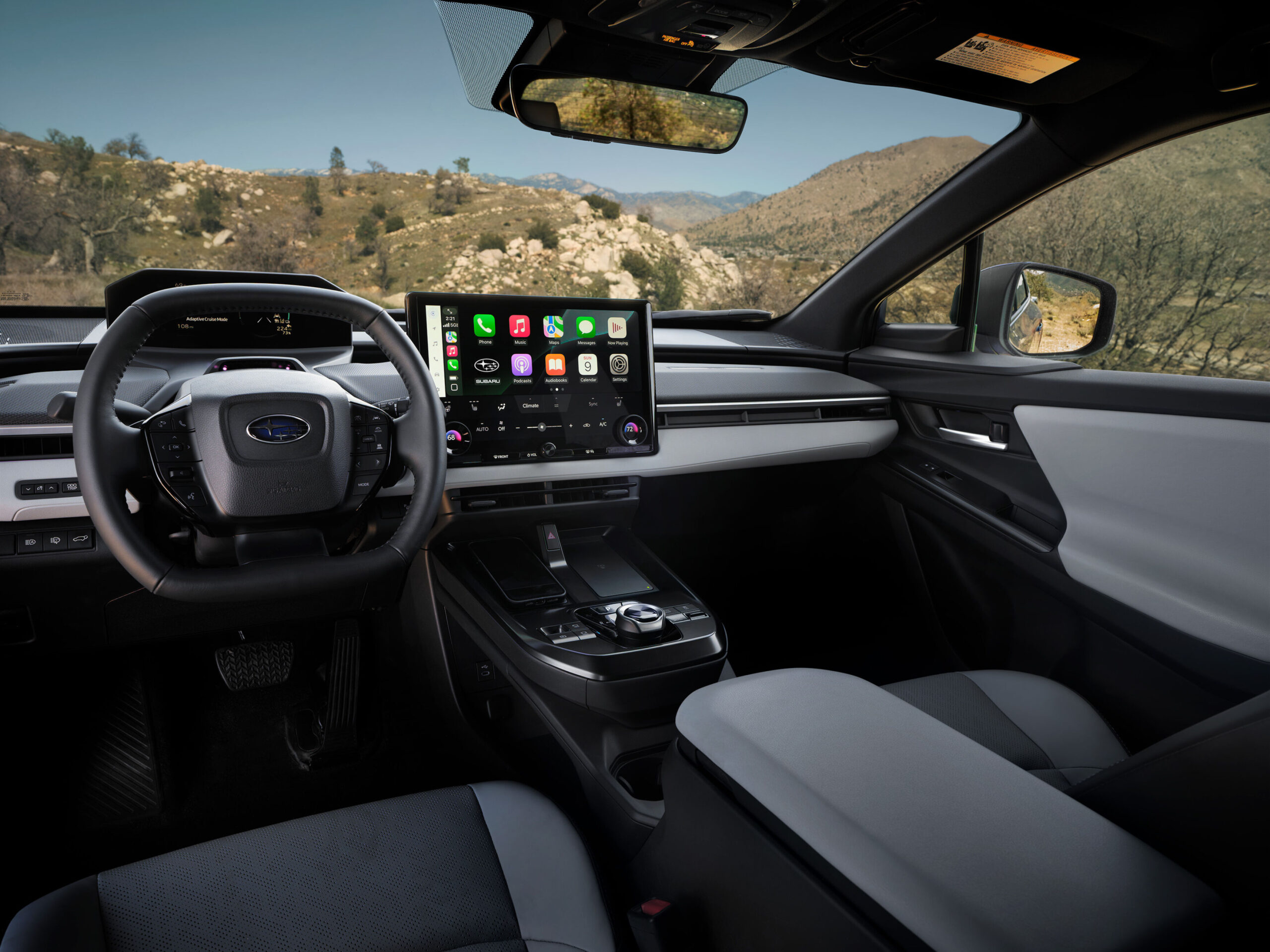 En el interior, la cabina abierta está realzada por una pantalla táctil de 14 pulgadas, la más grande jamás vista en un Subaru. Los acabados metálicos a lo largo del tablero enfatizan la horizontalidad, y una amplia consola central proporciona un espacio centralizado para dispositivos y artículos personales, facilitando su almacenamiento.