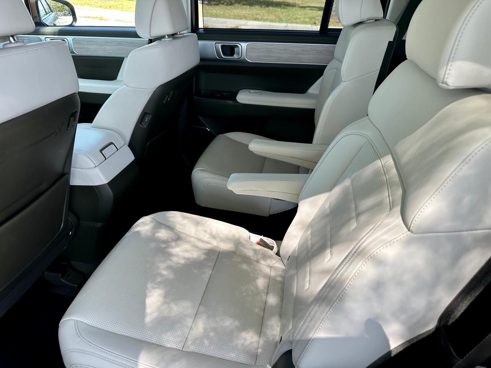 Por dentro, se ofrece un interior Premium con materiales de alta calidad. Los asientos están tapizados en cuero Nappa, con detalles en madera y aluminio que elevan la sensación de lujo. El espacio es amplio tanto para pasajeros como para carga, haciendo que cada viaje sea cómodo y práctico, incluso en trayectos largos o con la familia. Y 3 líneas de asientos… sobrepasan las necesidades.