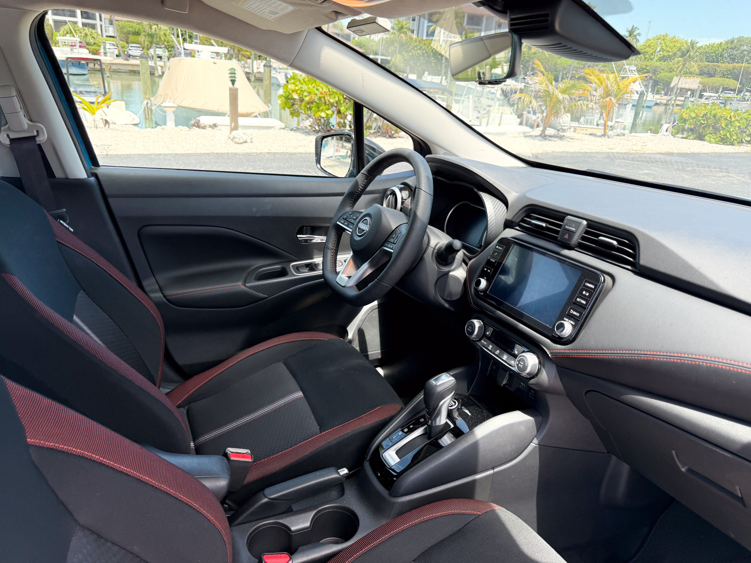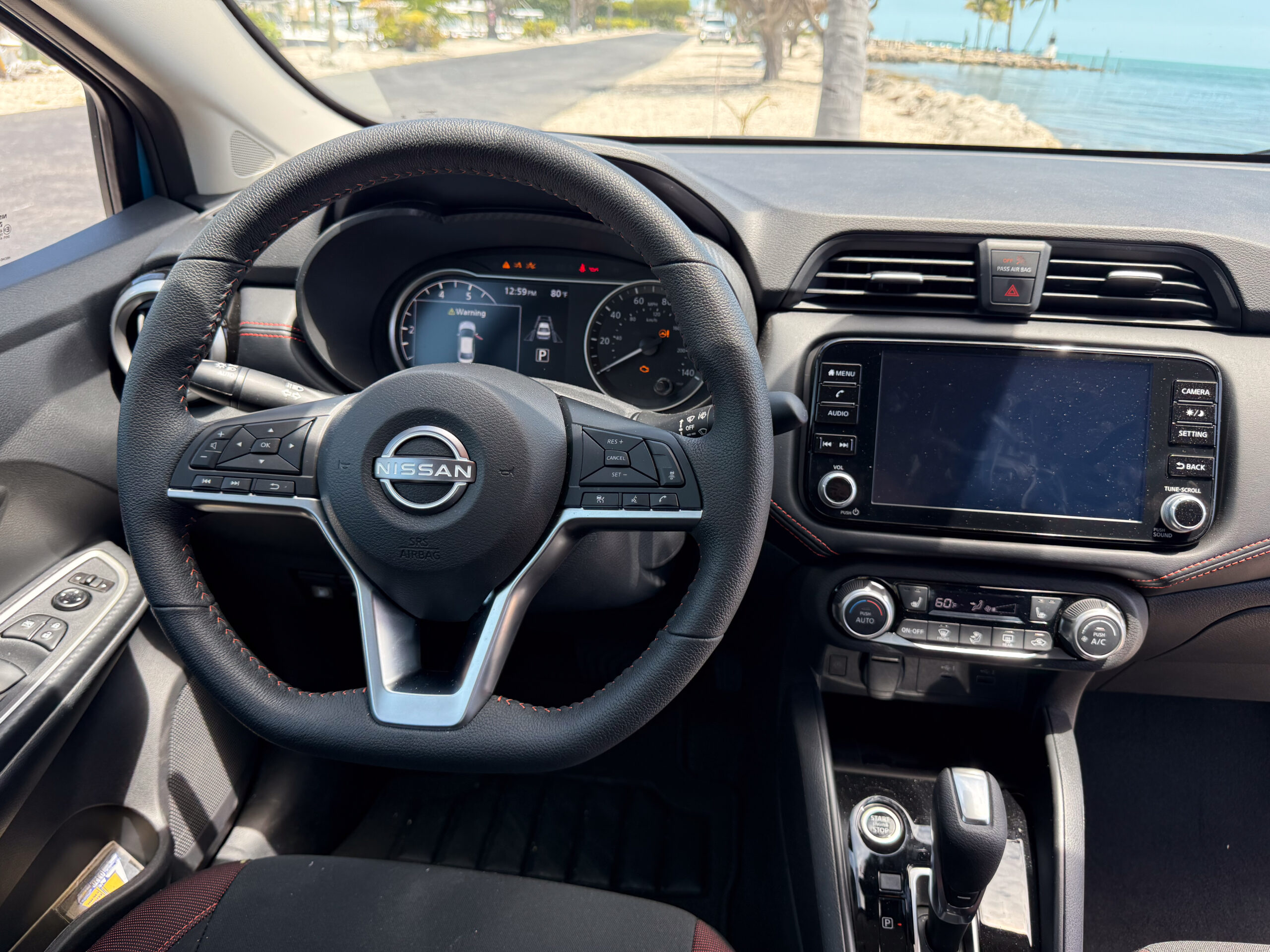En cuanto a seguridad, Nissan equipa al Versa SR con el paquete Nissan Safety Shield 360, que incluye frenado automático de emergencia con detección de peatones, alerta de punto ciego, alerta de tráfico cruzado trasero, asistente de mantenimiento de carril y luces altas automáticas. Estas asistencias convierten al Versa en uno de los sedanes compactos más seguros del mercado.