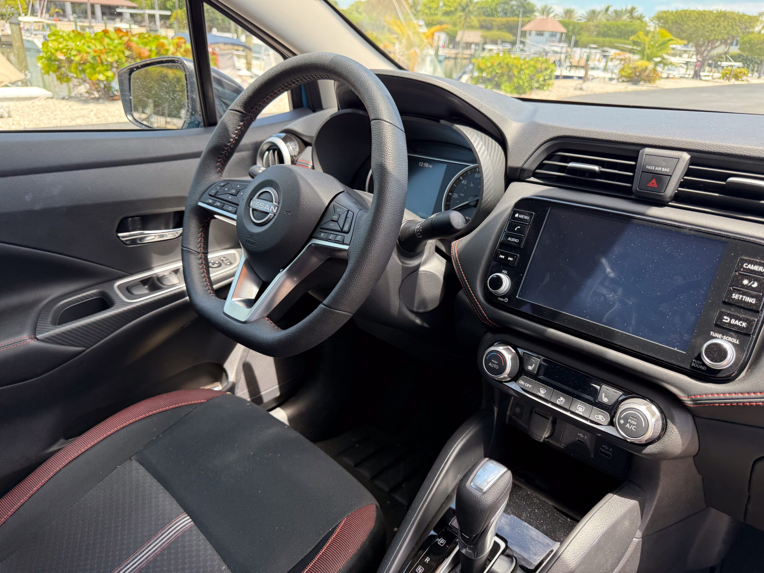 La tecnología es otro de los puntos fuertes del Versa SR. Incluye una pantalla táctil de 8 pulgadas compatible con Apple CarPlay y Android Auto, sistema de audio de seis bocinas, y puertos USB tipo A y C. También cuenta con encendido por botón, acceso inteligente sin llave y control de clima automático, funciones poco comunes en su rango de precio.