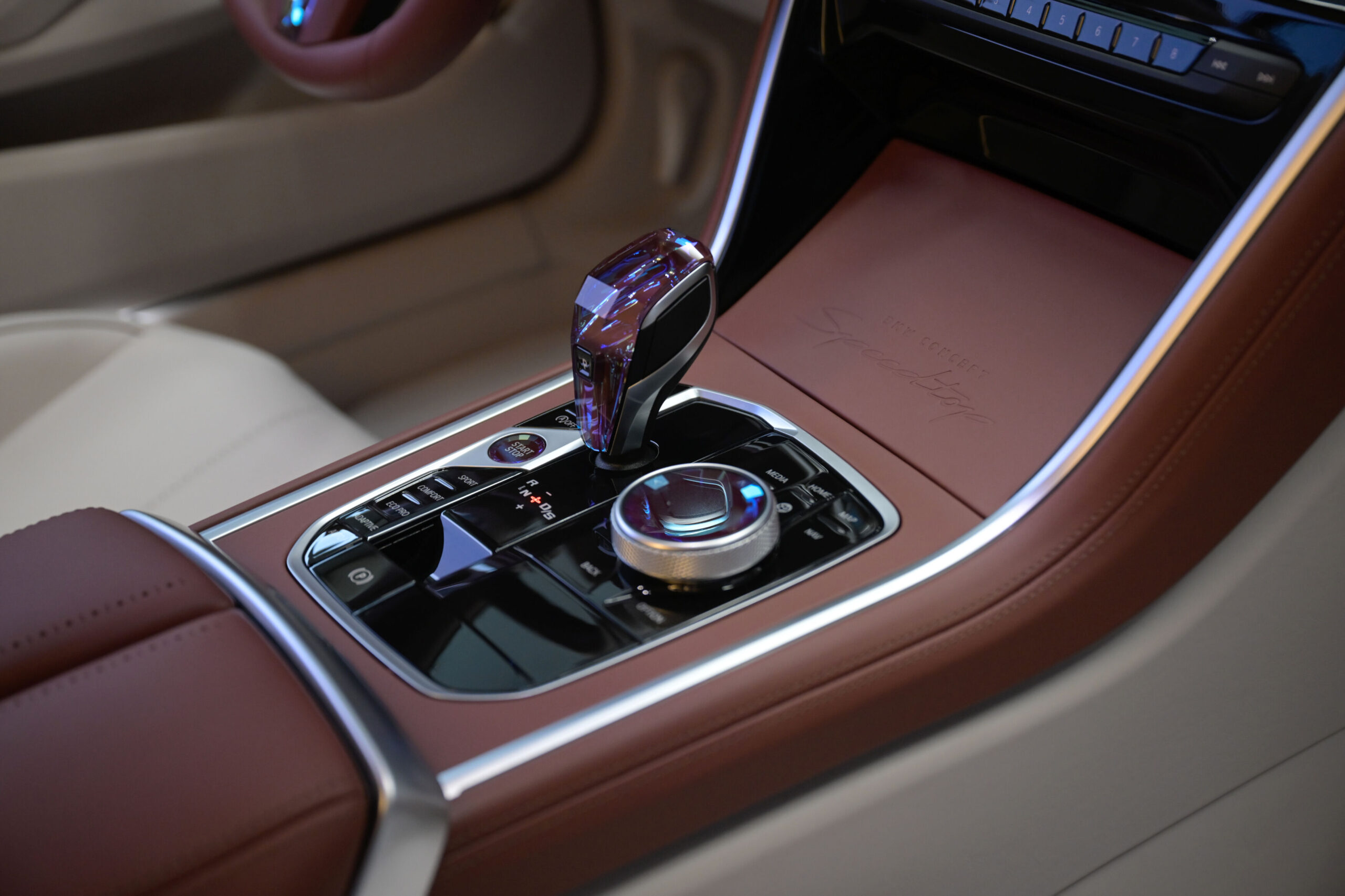 El interior del BMW Concept Speedtop se diseñó prestando especial atención hasta al más mínimo detalle. Los tradicionales detalles de estilo brogue, cuidadosamente elaborados, acentúan las superficies tapizadas en cuero y realzan la artesanía de alta calidad que se exhibe.