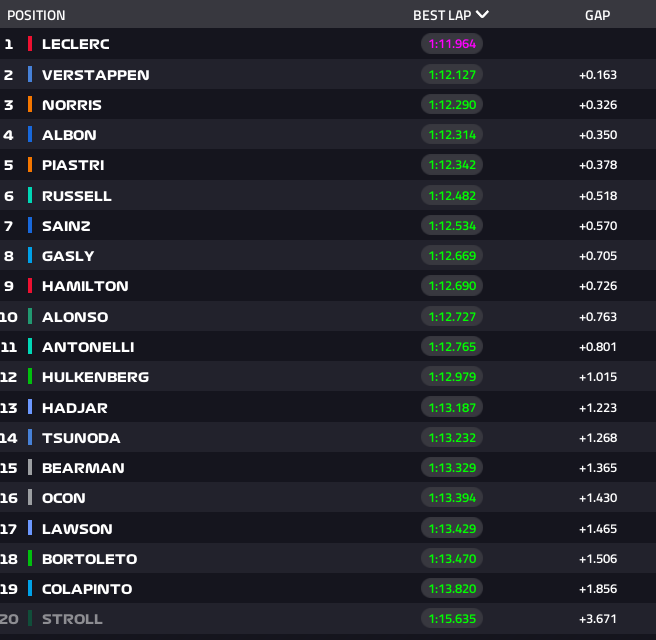 El compañero de equipo de Charles Leclerc, Lewis Hamilton, se mostró muy agresivo al inicio de la sesión, pero el piloto cuarto clasificado en el Gran Premio de Emilia Romagna se vio obligado a abandonar varios intentos tras verso obstaculizando por el tráfico en la pista. También molestó a Liam Lawson, quien se molestó en la radio. En medio de un tráfico muy perturbador para los pilotos, varios se salieron de la pista: en Sainte-Dévote (Sainz, Bortoleto), en Mirabeau (Leclerc) o en la chicane a la salida del túnel (Hamilton, Gasly). Otros impactaron contra la barandilla de la piscina, pero ninguno dañó su suspensión.