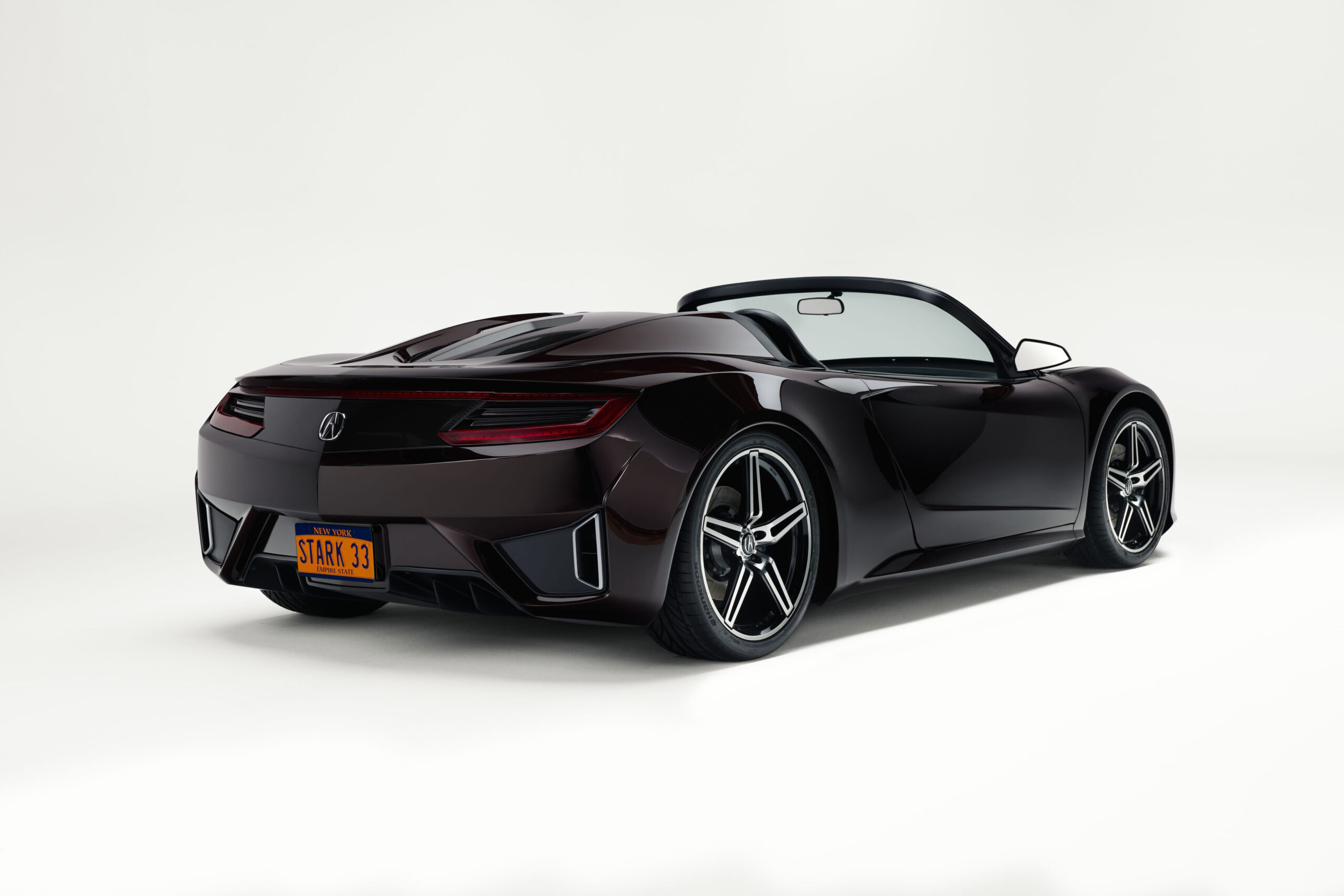 El Acura NSX Roadster se creó específicamente para la producción del gran éxito, con un estilo inspirado en el prototipo NSX de segunda generación, presentado por primera vez en el Salón Internacional del Automóvil de Norteamérica de 2012. El roadster fue diseñado por un equipo del Estudio de Diseño de Acura en Los Ángeles, dirigido por el entonces director creativo de Acura, Dave Marek, y se mantiene exactamente igual que apareció en pantalla hace 13 años, con la matrícula «Stark 33».