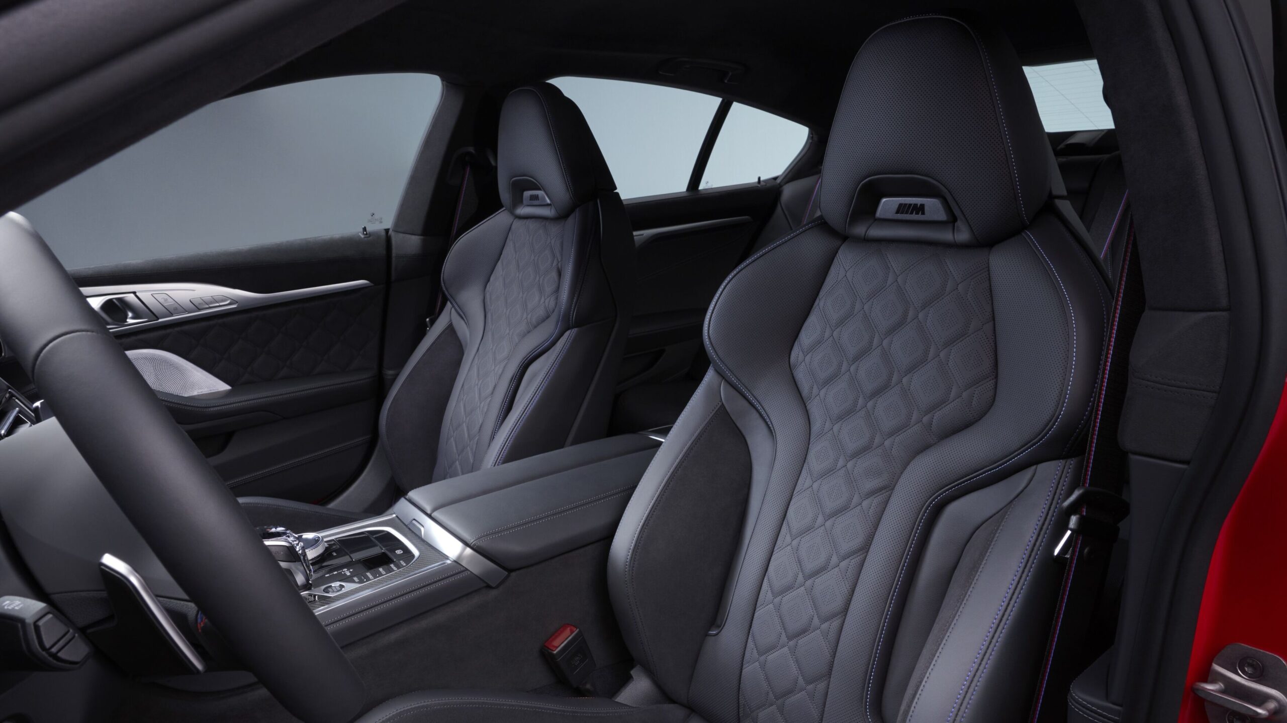 En el interior, el M850i Edition M Heritage cuenta con asientos, tapicería y molduras únicos, no disponibles en otros modelos de la Serie 8. El conductor y el acompañante disponen de asientos M Sport con tapizado en cuero merino negro BMW Individual y Alcantara, con un patrón de rombos. El tapizado de Alcantara también adorna el techo, el salpicadero y los paneles superiores de las puertas. Los asientos, los paneles de las puertas y los cinturones de seguridad lucen costuras tricolor M, y cada reposacabezas delantero cuenta con una insignia M especial sin iluminación.