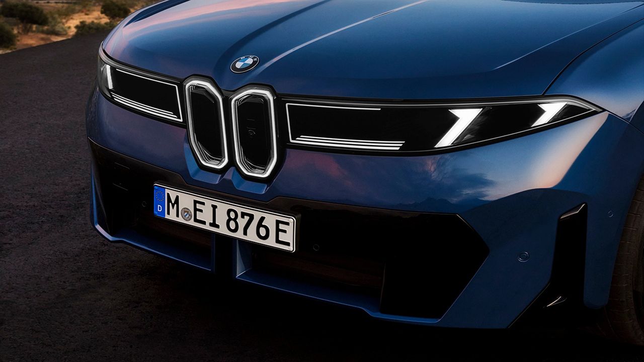 El iX3 rompe por completo con el estilo de la actual gama X3. Su frontal destaca por una pieza en negro brillante que une los faros principales, separados por detalles en ángulo de 45º, y una parrilla ovoide iluminada que recuerda a los BMW de los años 80.