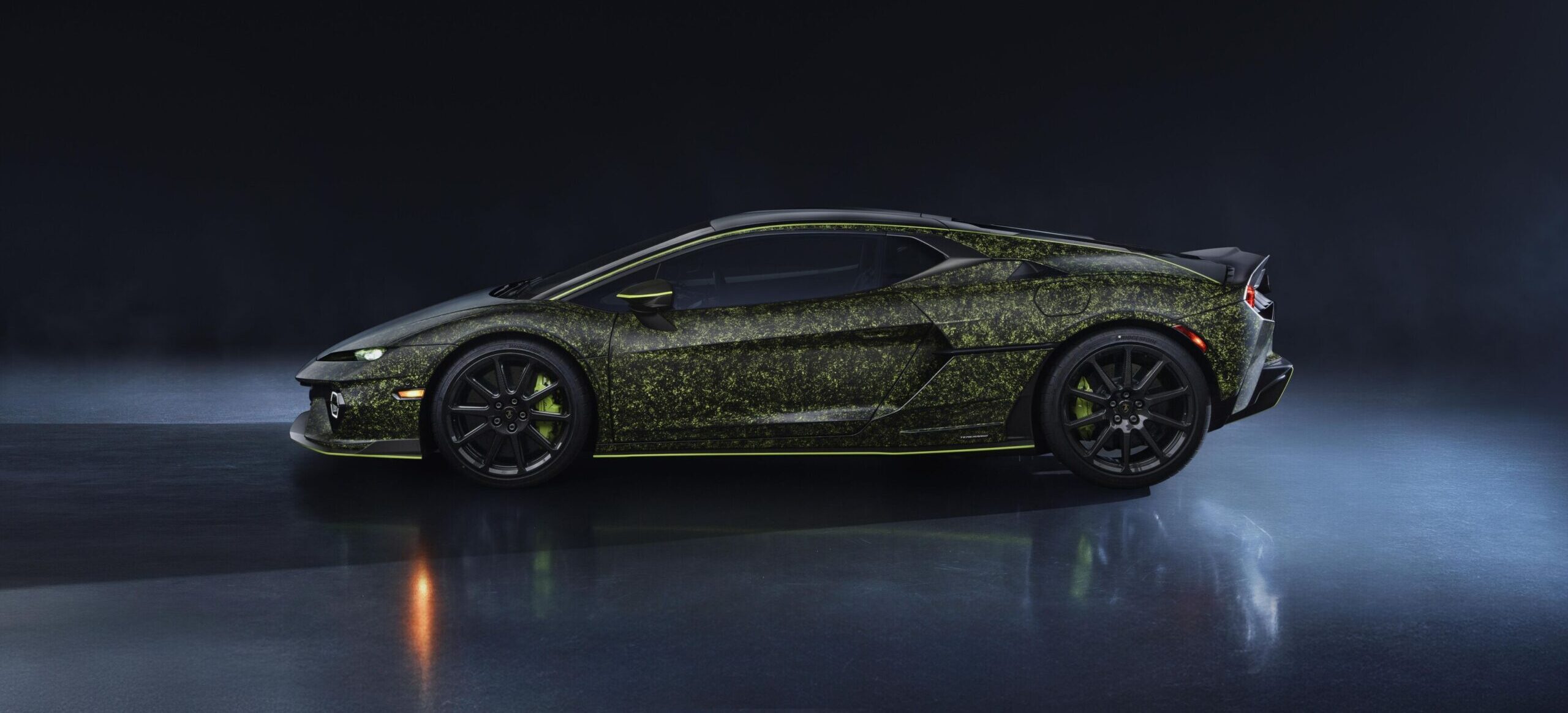 Esta configuración Ad Personam destaca por un complejo trabajo de pintura a mano que demandó 320 horas adicionales. El acabado combina Verde Shock, Grigio Maat y Nero Nemesis en un patrón artístico que produce un efecto cristal único, acentuando las líneas aerodinámicas y la filosofía ligera del paquete Alleggerita, que utiliza fibra de carbono de manera extensiva para maximizar el rendimiento en circuito.