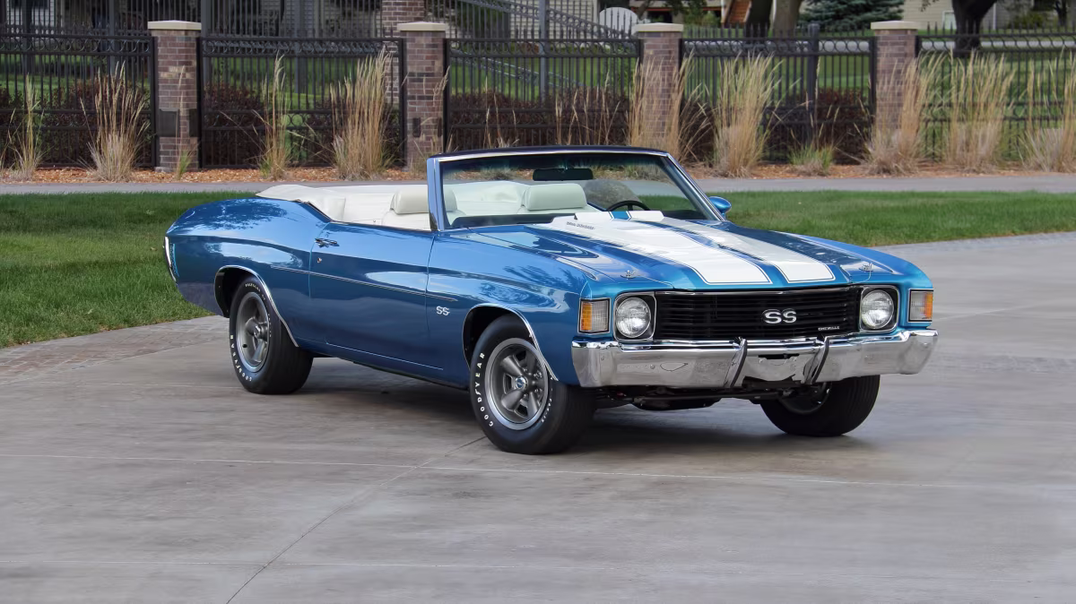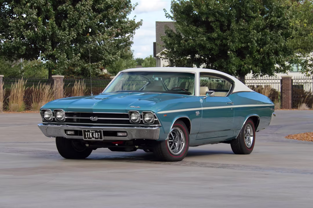 Para los amantes del muscle car puro, el Chevrolet Chevelle SS 1969 ofrece una dosis directa de Detroit, con su V8 de 396, pintura turquesa y detalles que evocan la época dorada de los autos de alto desempeño.