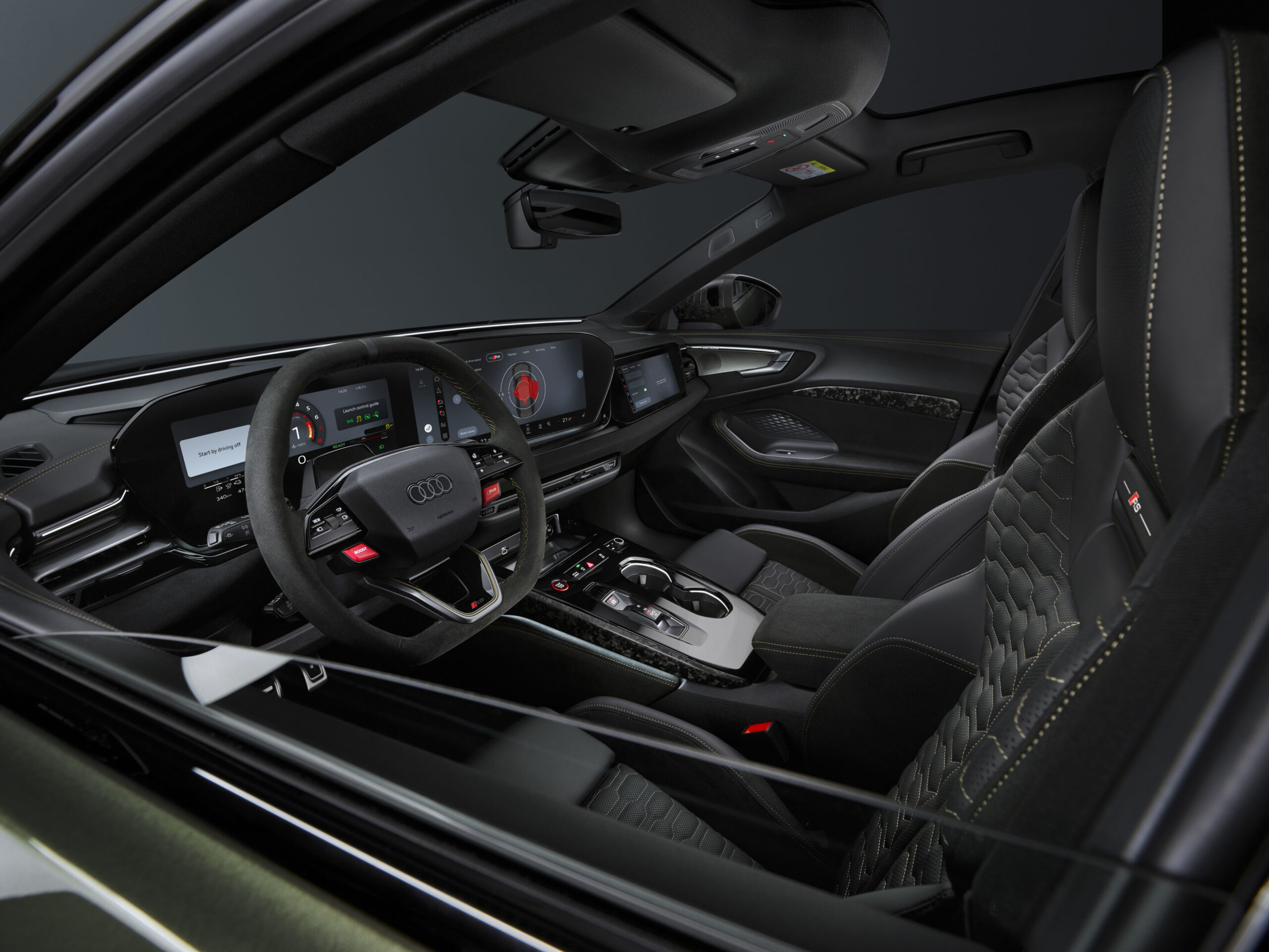 El sistema Audi drive select ofrece una amplia variedad de configuraciones, incluyendo los nuevos modos RS Sport y RS Torque Rear, este último orientado a circuito y derrapes controlados.