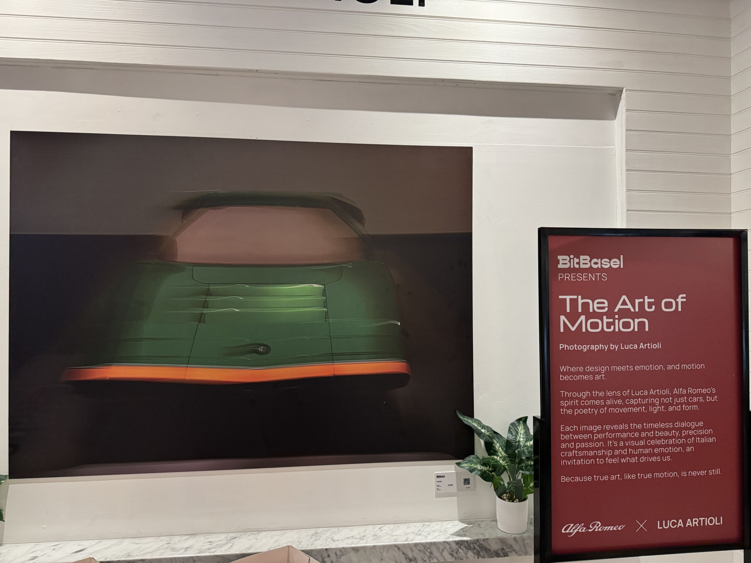 Del 3 al 7 de diciembre, Alfa Romeo continuó su despliegue artístico con una instalación de alto impacto en colaboración con BitBasel, ubicada en el icónico Hotel Sagamore. La zona de valet sobre Collins Avenue se convirtió en una vitrina de innovación, exhibiendo nuevamente el 33 Stradale junto a un Tonale Art Car, decorado con un llamativo diseño gráfico inspirado en el sexto aniversario de BitBasel.