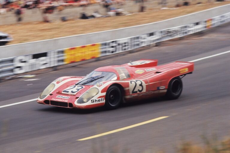 La paciencia dio resultado. Bajo una intensa lluvia y aprovechando los problemas mecánicos de sus rivales, el Porsche 917 rojo y blanco escaló posiciones hasta cruzar la meta en primera posición, con cinco vueltas de ventaja. Aquella victoria supuso el primer triunfo absoluto de Porsche en las 24 Horas de Le Mans, un hito que marcaría el inicio de una era dominante para la marca alemana.